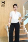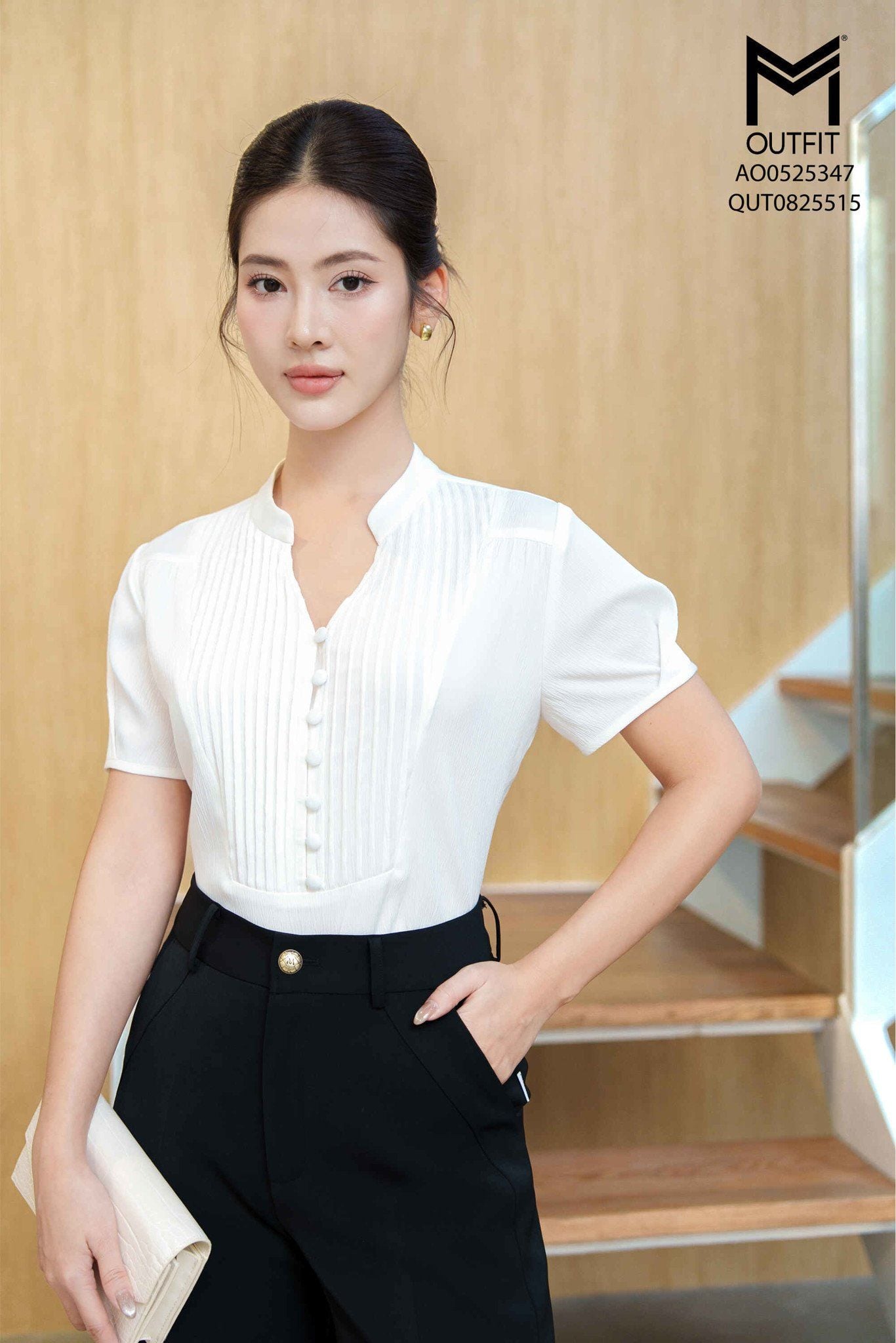 Áo sơ mi cộc tay bấu mí thân áo đính cúc bọc