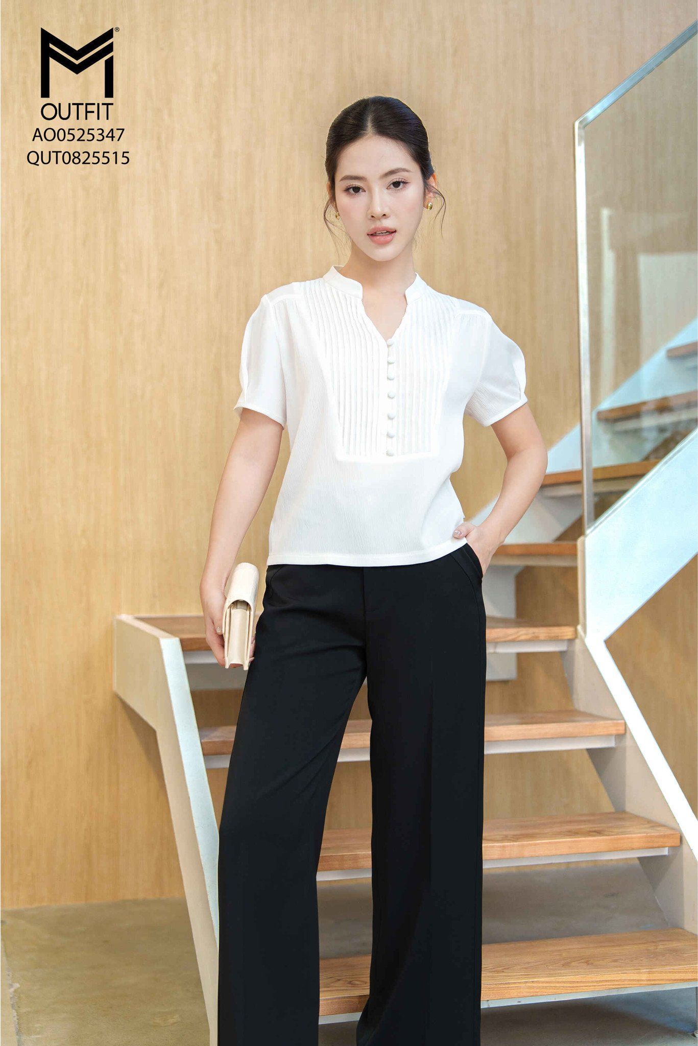 | Đặc điểm | Áo sơ mi cộc tay bấu mí thân áo đính cúc bọc |