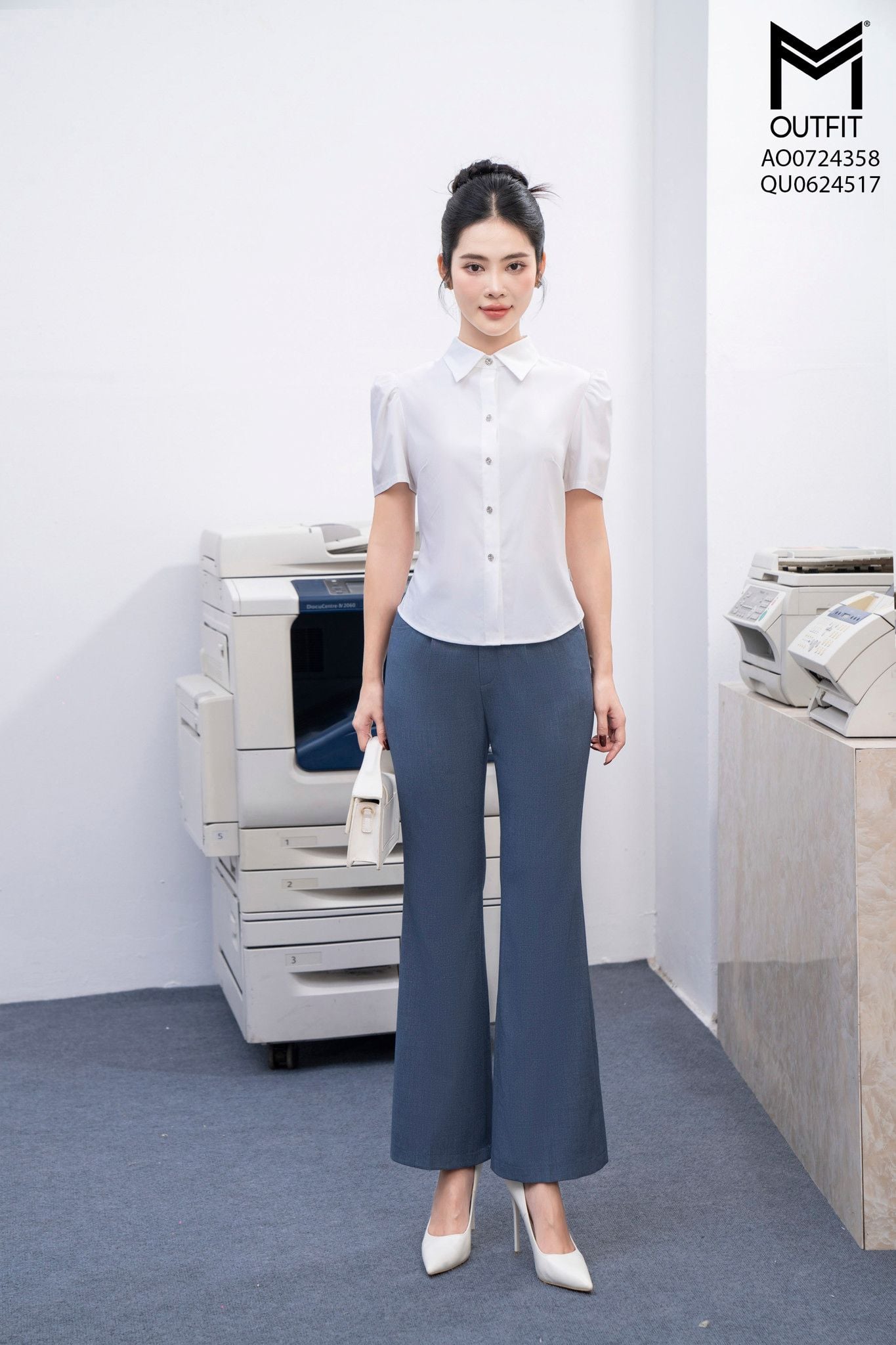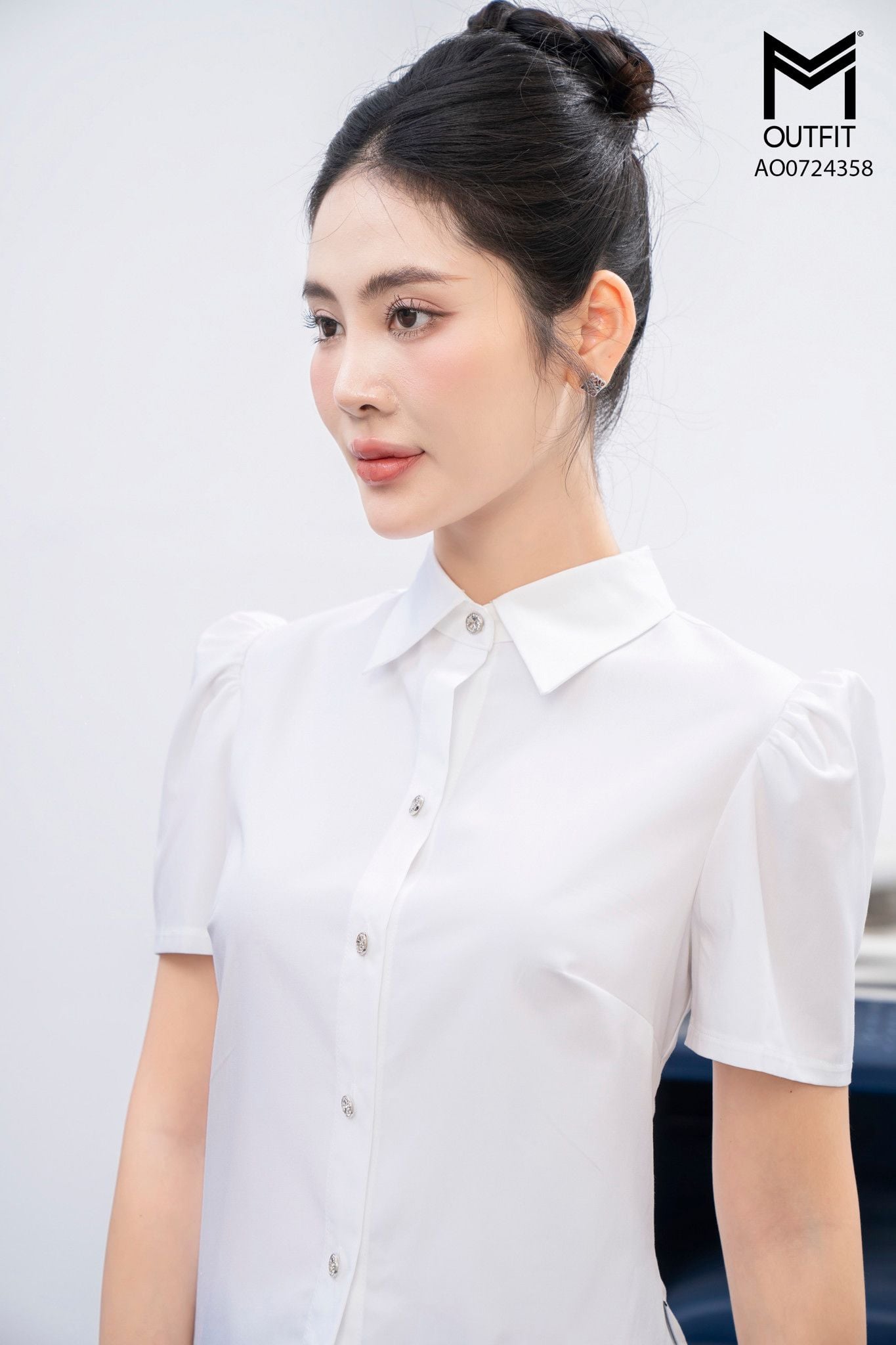 | Đặc điểm | Áo sơ mi croptop ôm eo tay nhún bồng vai |