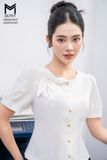 | Đặc điểm | Áo sơ mi croptop tay xếp bồng đính nơ cổ |