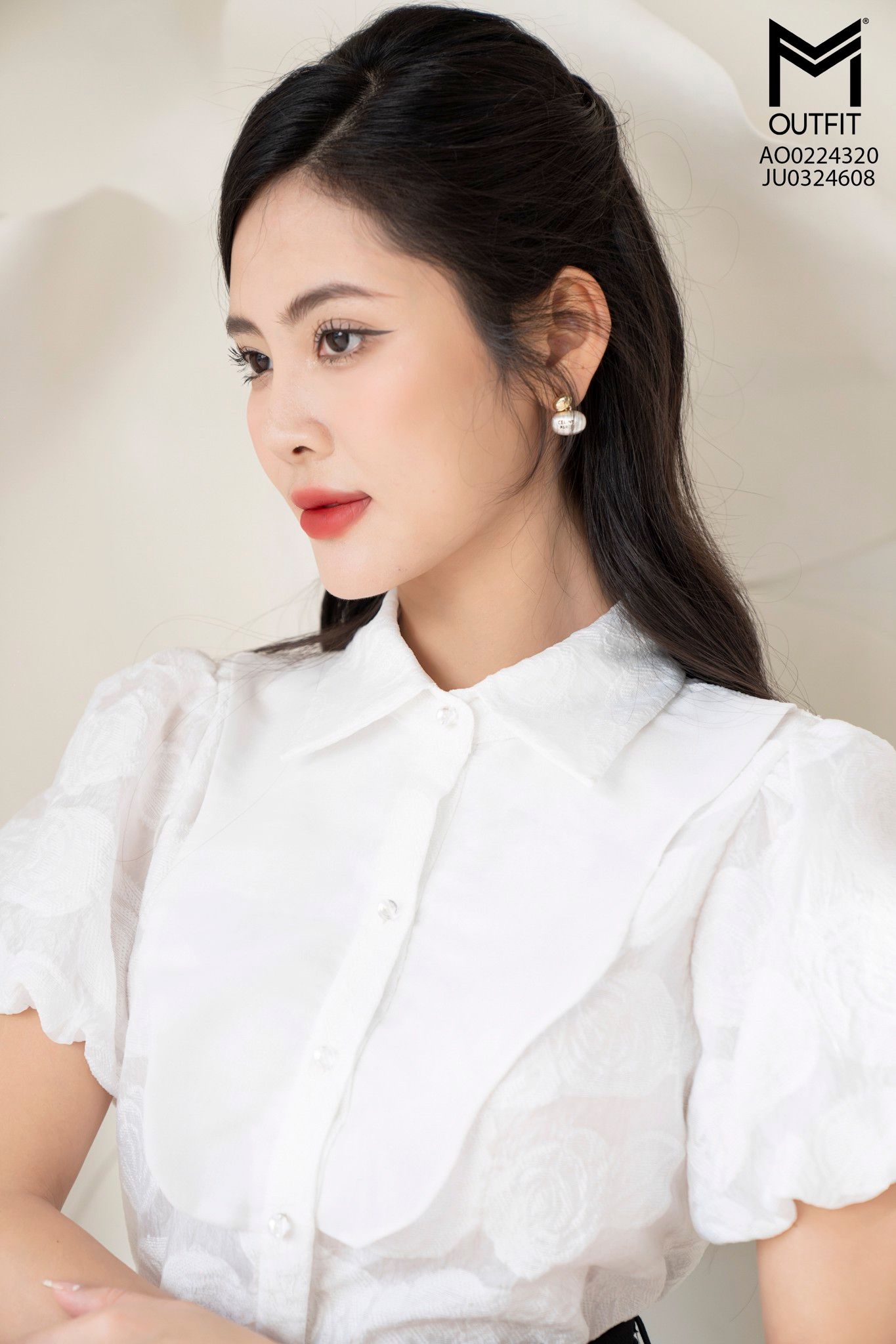 | Đặc điểm | Áo sơ mi dáng eo + tay bồng đều |