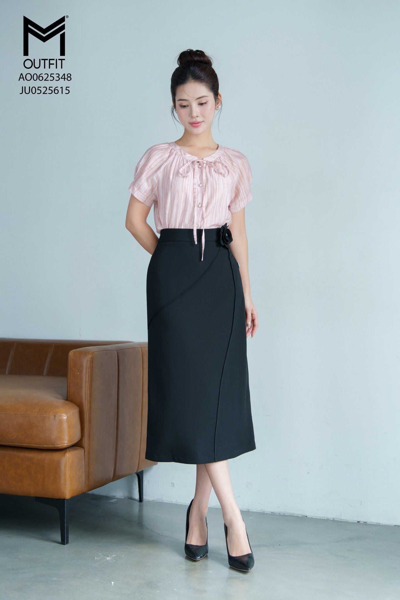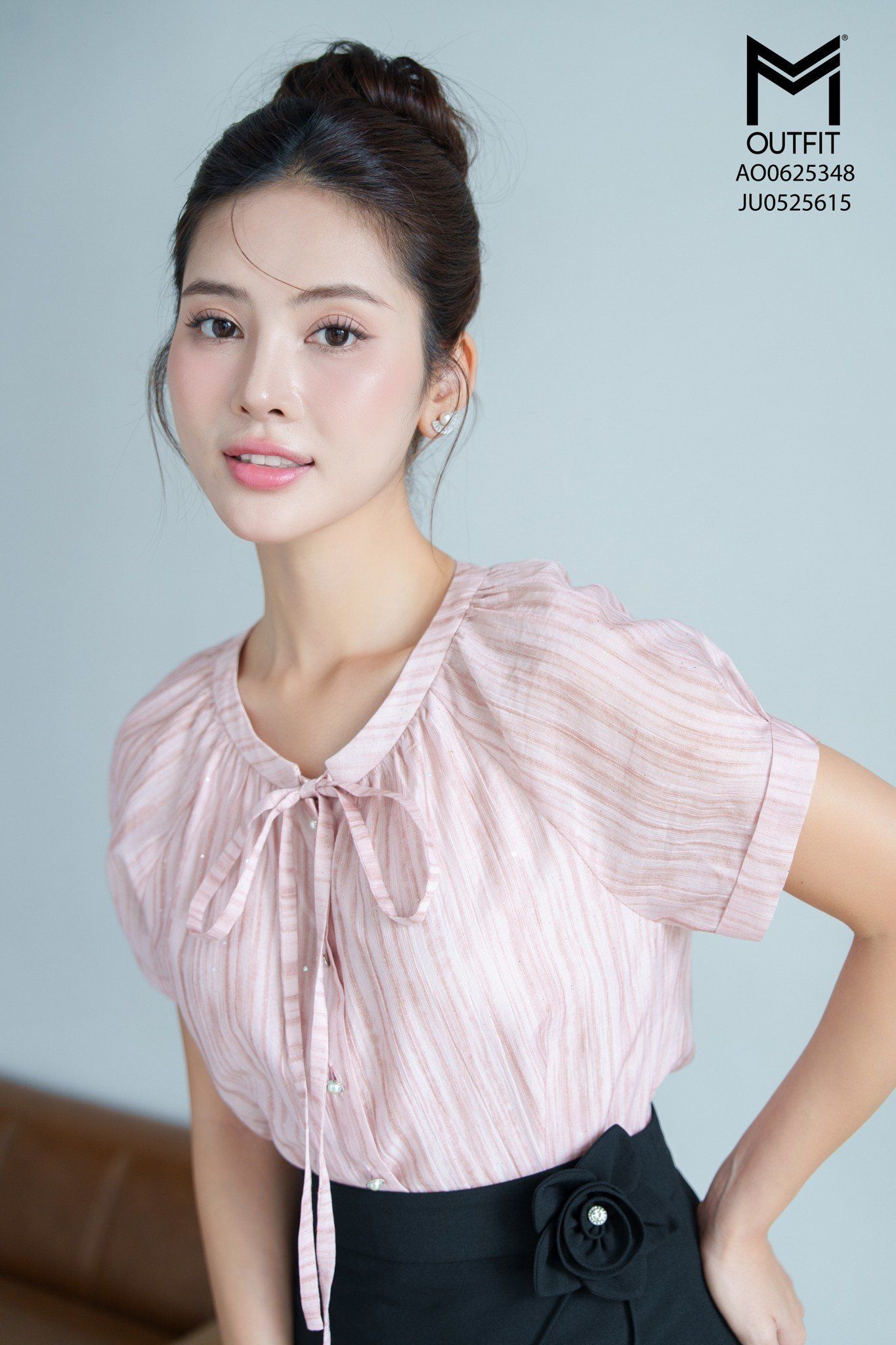 | Đặc điểm | Áo sơ mi kẻ cổ tròn có dây thắt nơ,tay lơ vê |