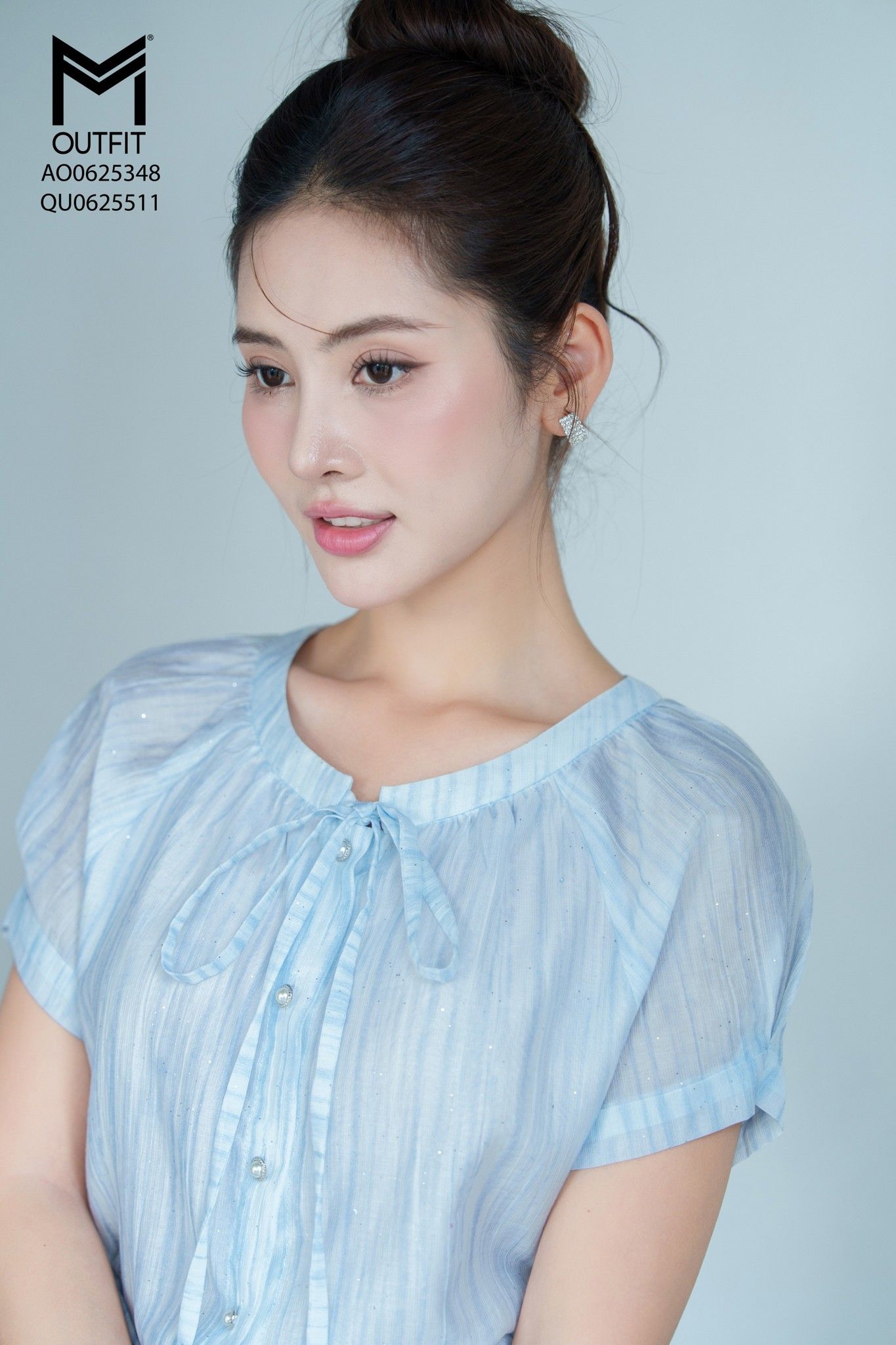 | Đặc điểm | Áo sơ mi kẻ cổ tròn có dây thắt nơ,tay lơ vê |