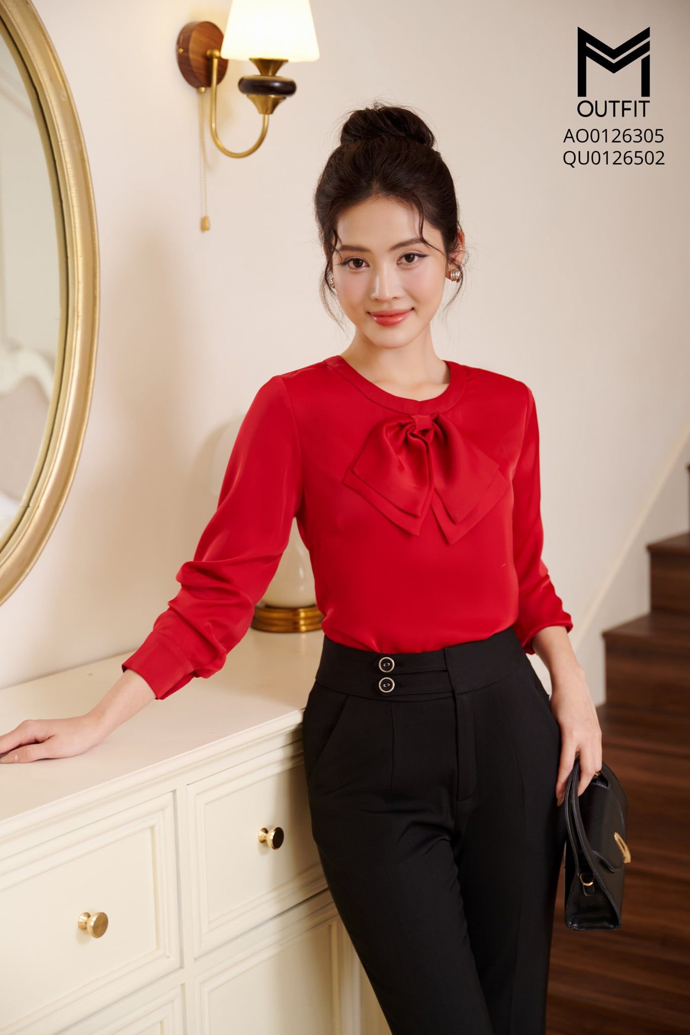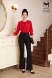 | Đặc điểm | Áo sơ mi lụa cổ tròn đính nơ |
