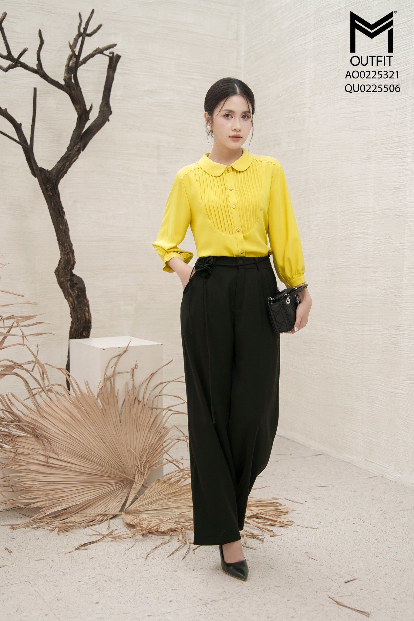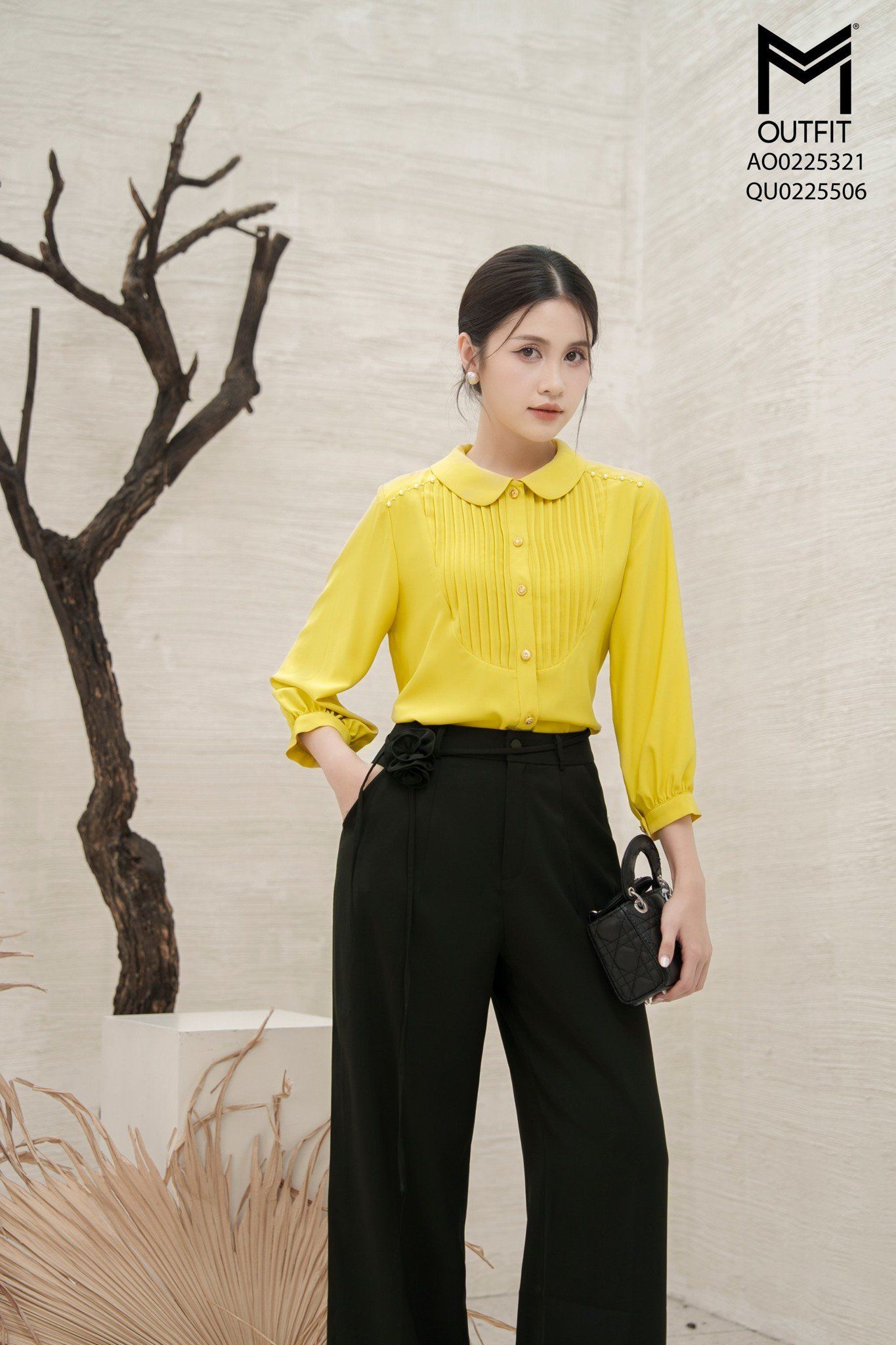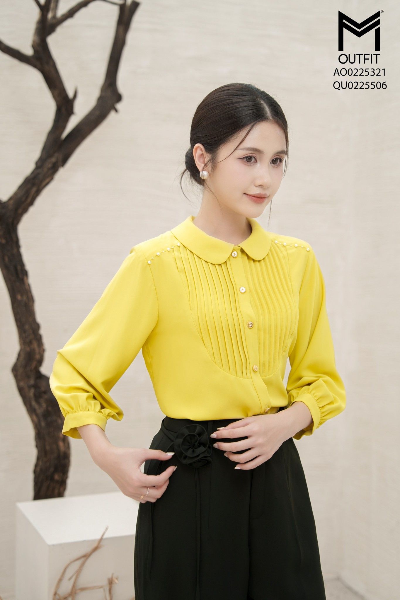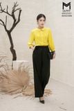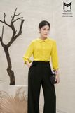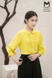 Áo sơ mi suông cổ sen,can cầu vai đính trai,ngực xếp ly