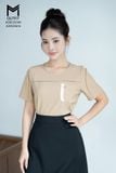 Áo sơ mi suông eo cổ tròn có túi ngực mix với JU0525616