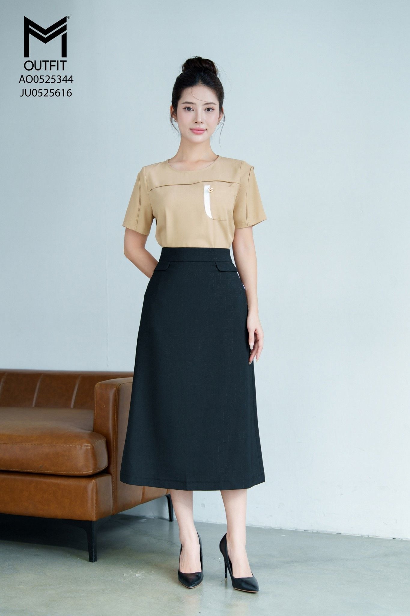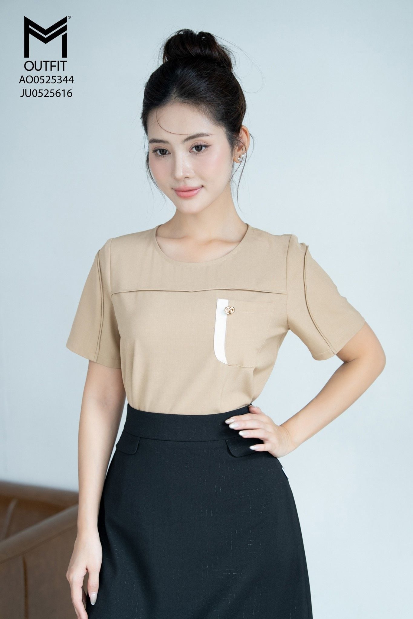 | Đặc điểm | Áo sơ mi suông eo cổ tròn có túi ngực mix với JU0525616 |