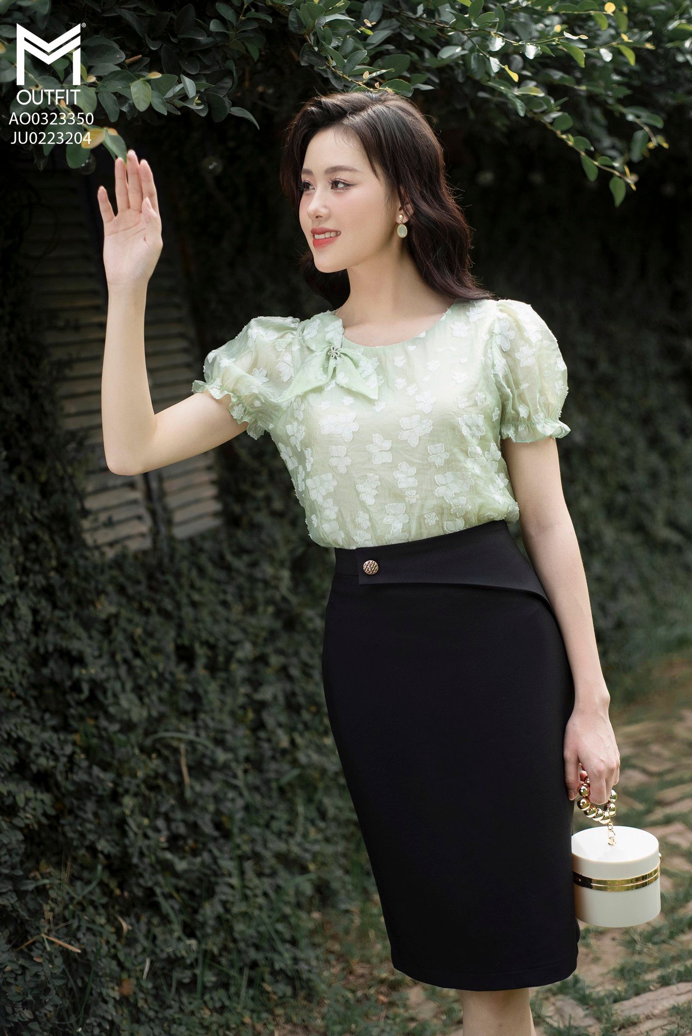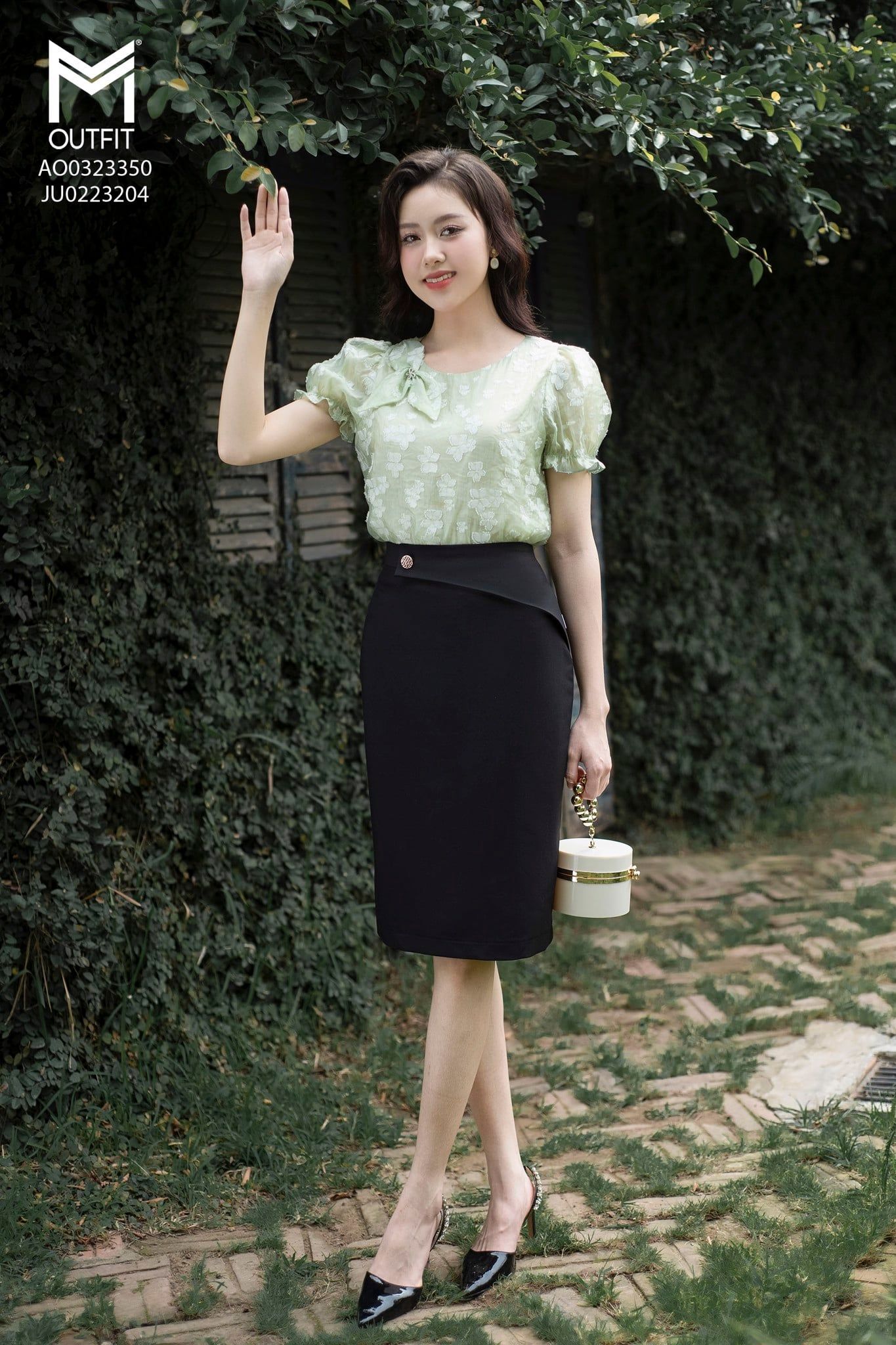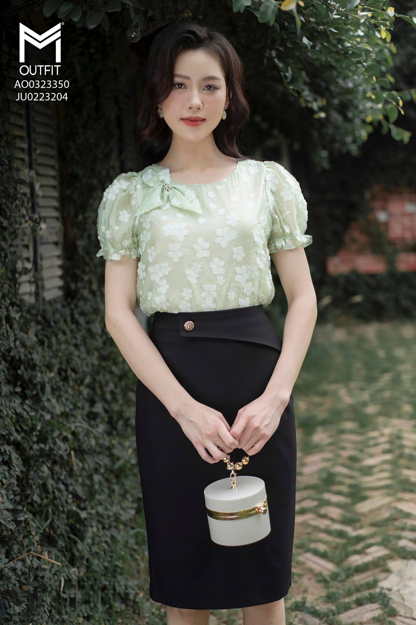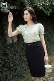 | Đặc điểm | Áo sơ mi tay bo chun, đính hoa TT |