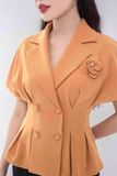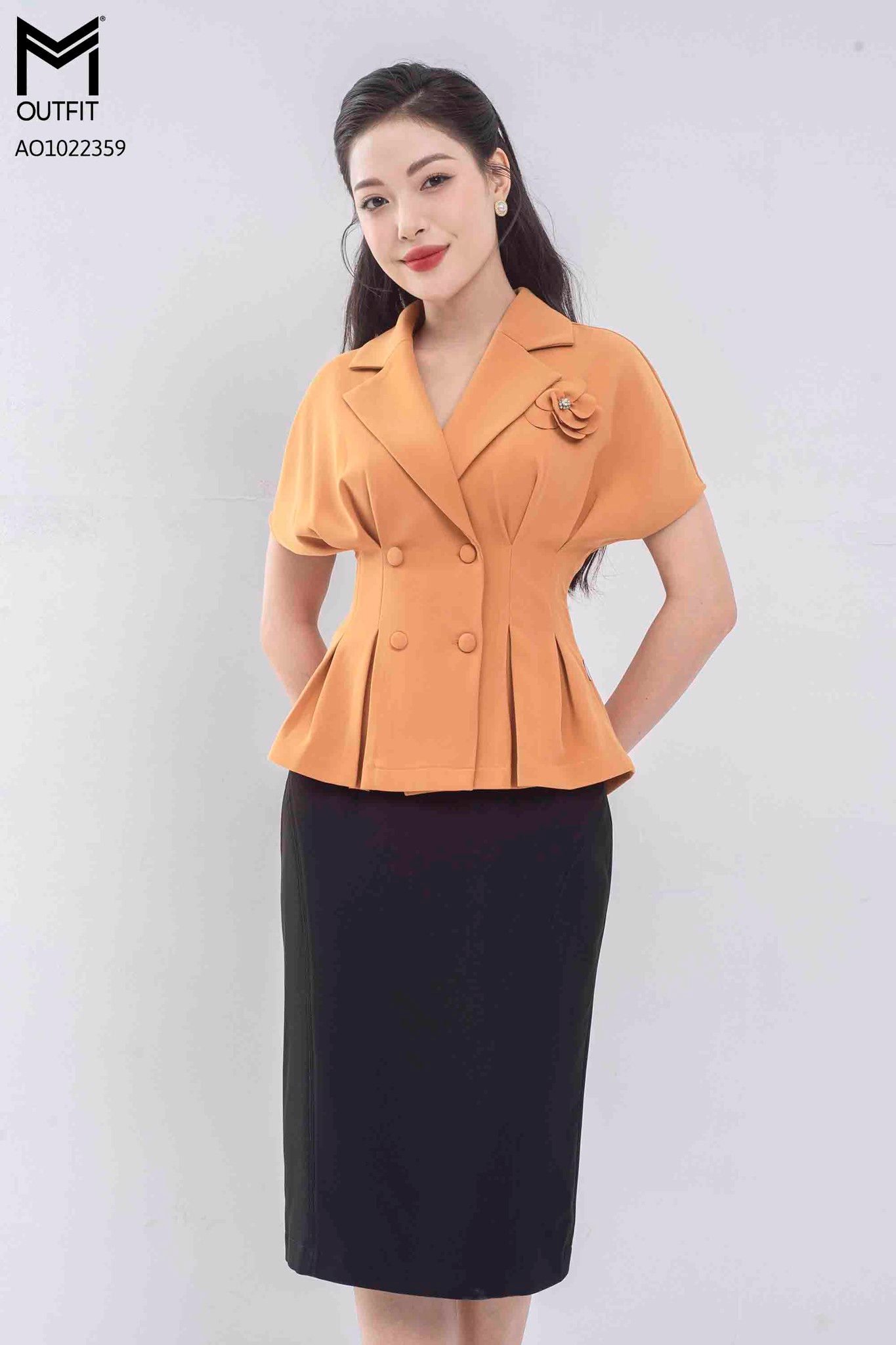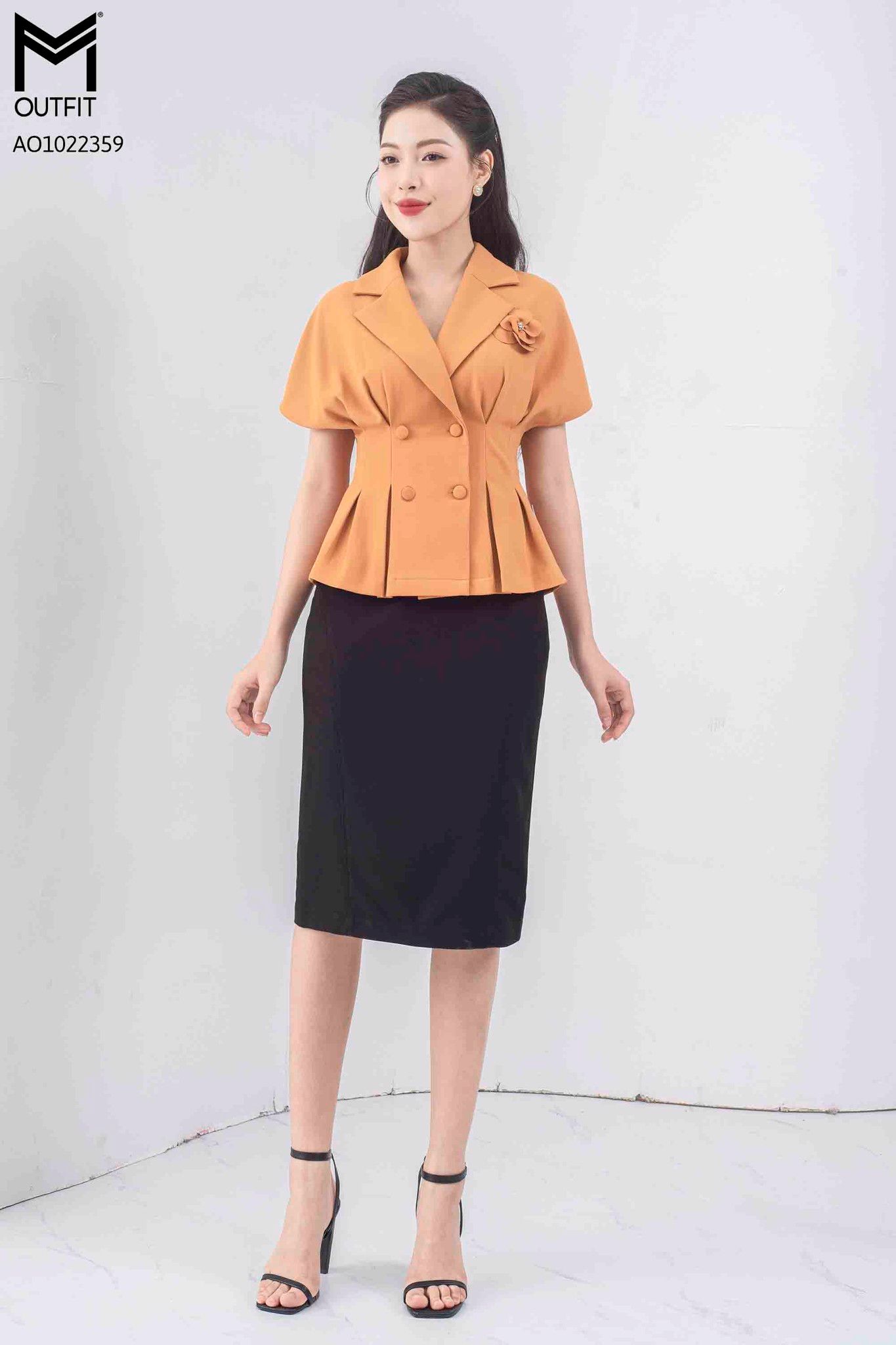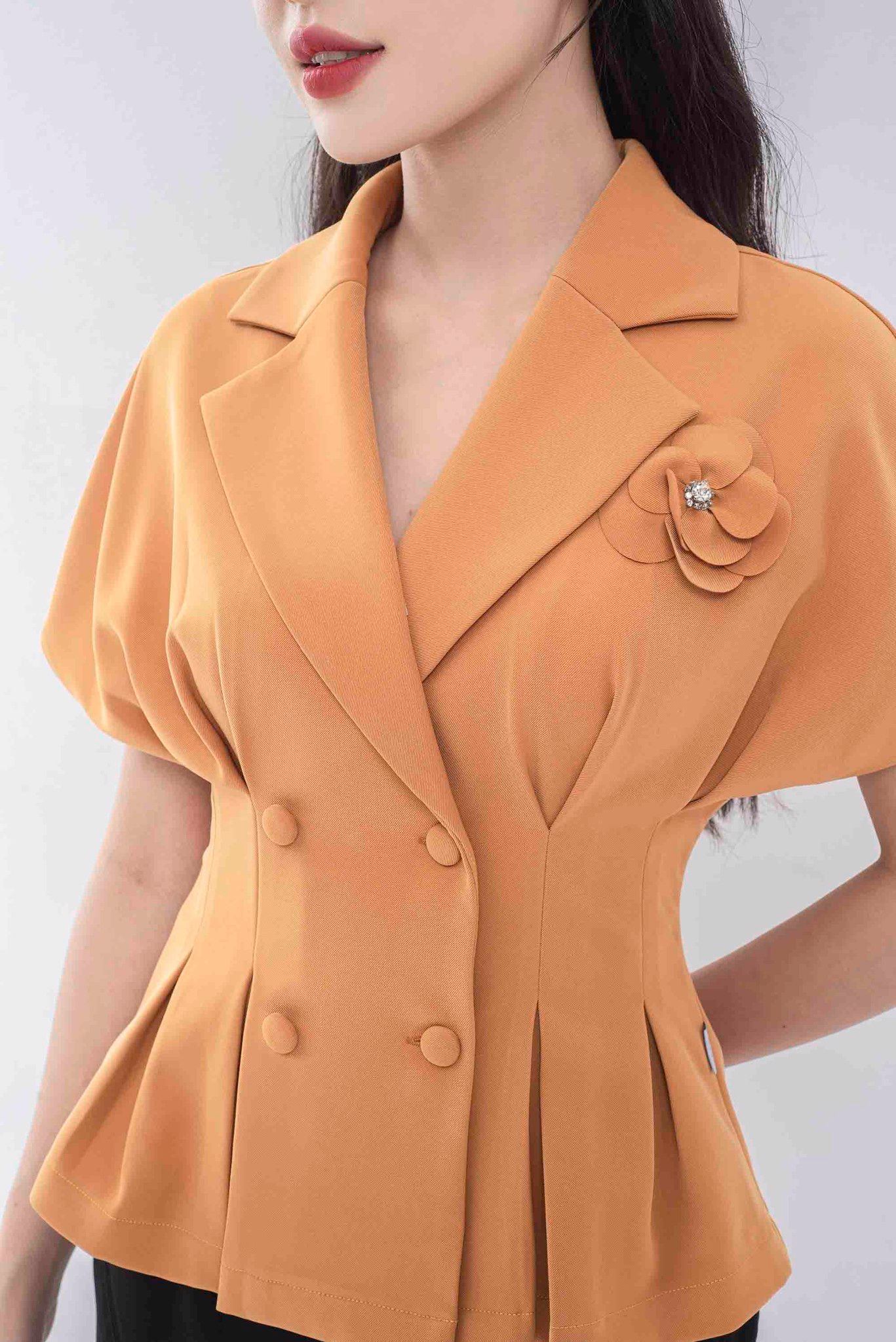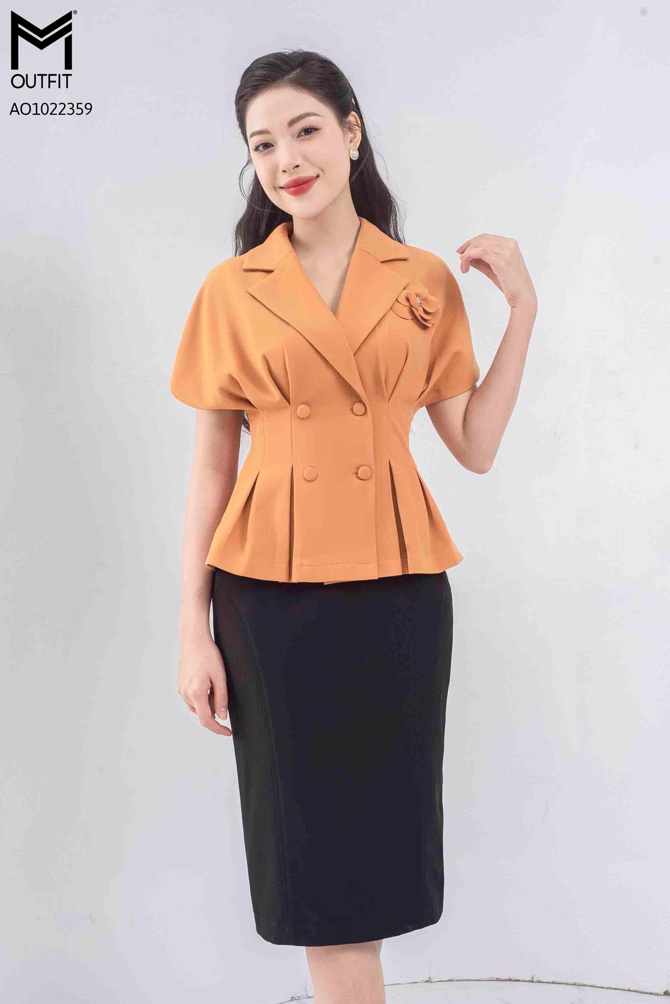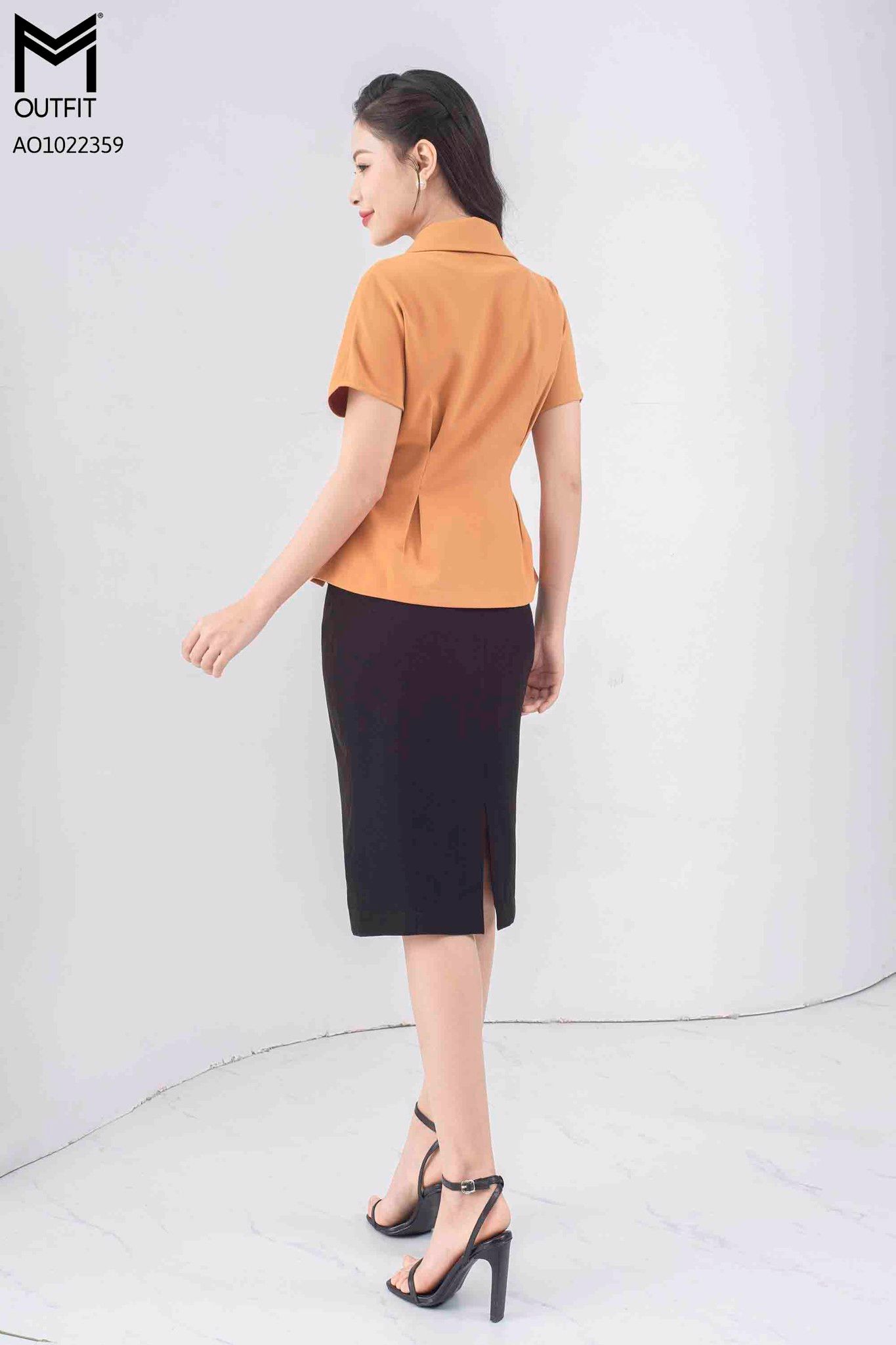 | Đặc điểm | Áo sơ mi tay hến, cổ bẻ đính hoa TT |