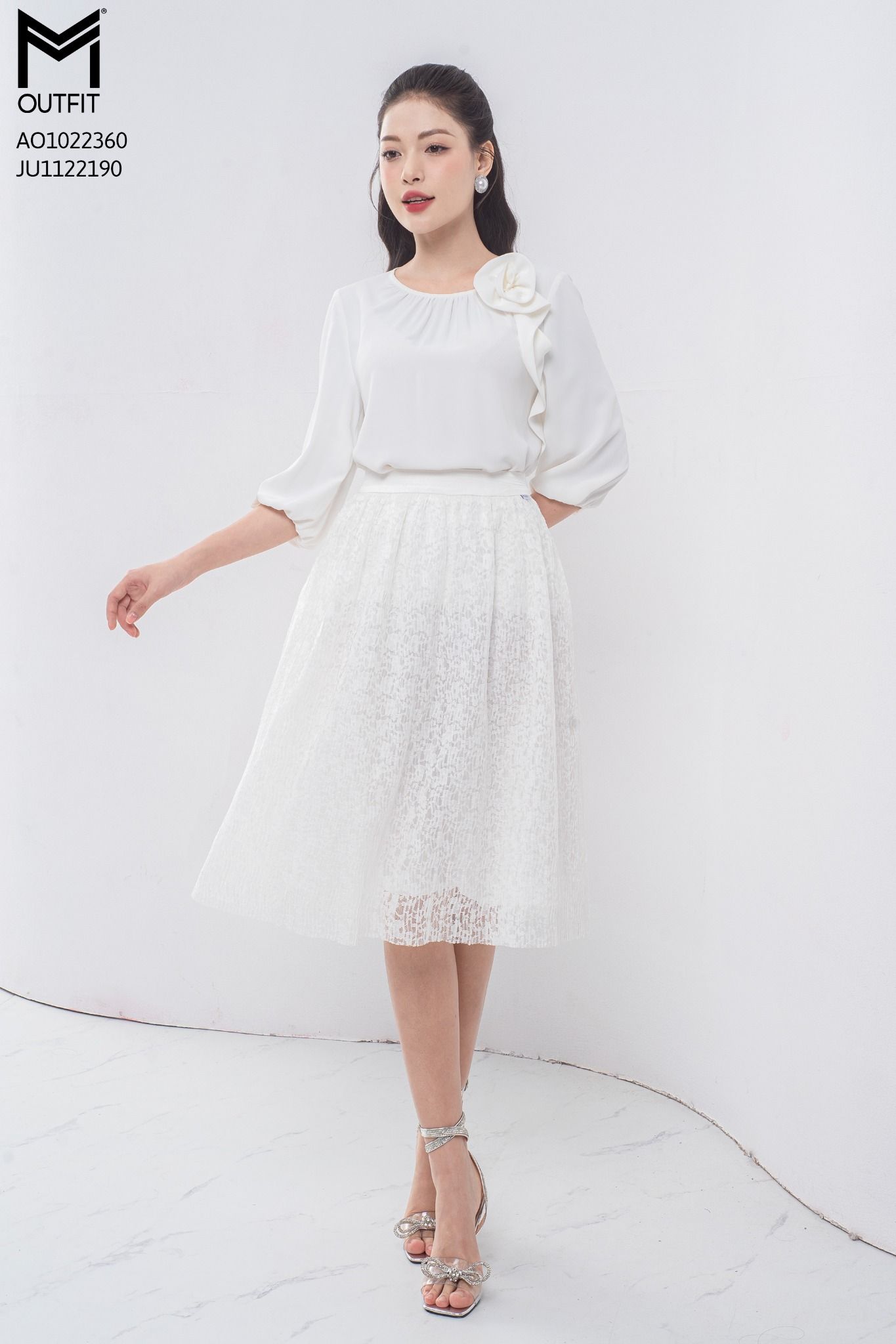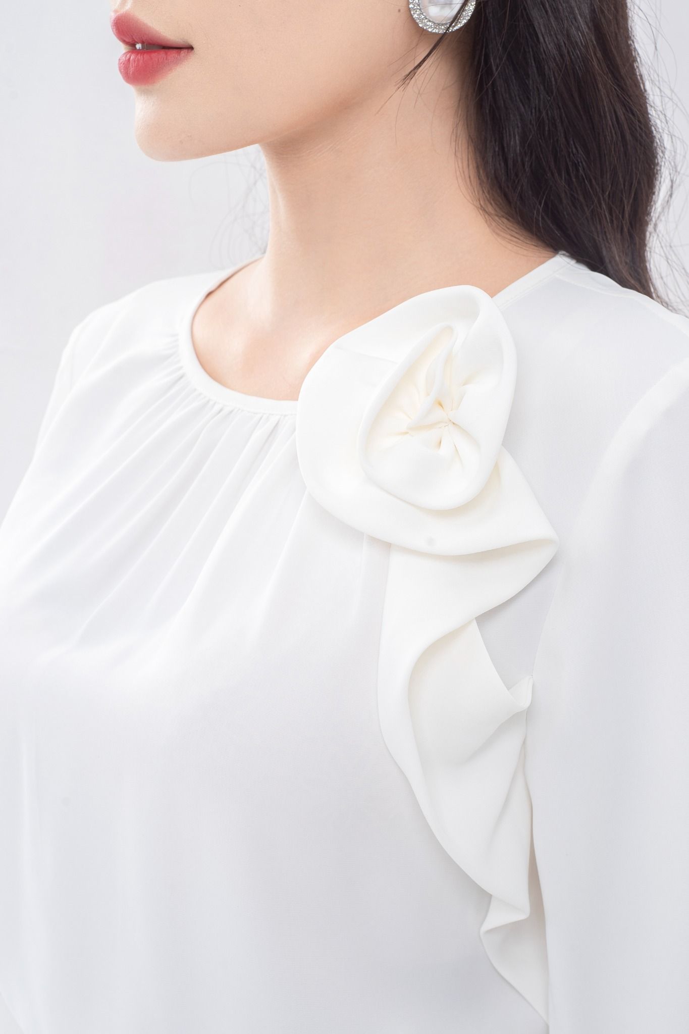 | Đặc điểm | Áo sơ mi tay lửng bo chun, đính hoa TT |