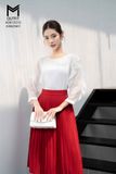 | Đặc điểm | Áo sơ mi tay phối tơ bèo đổ, đính hoa cổ |
