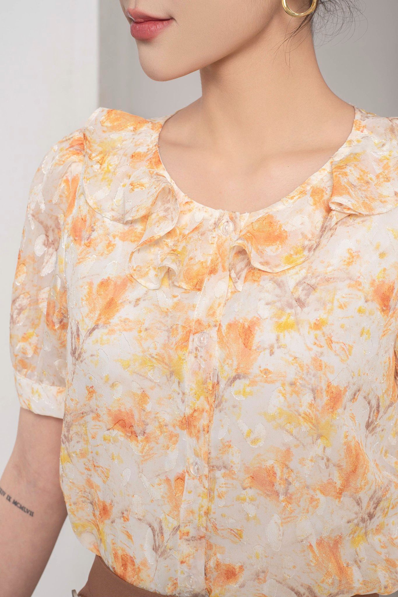 | Đặc điểm | Áo sơ mi voan cổ bèo |