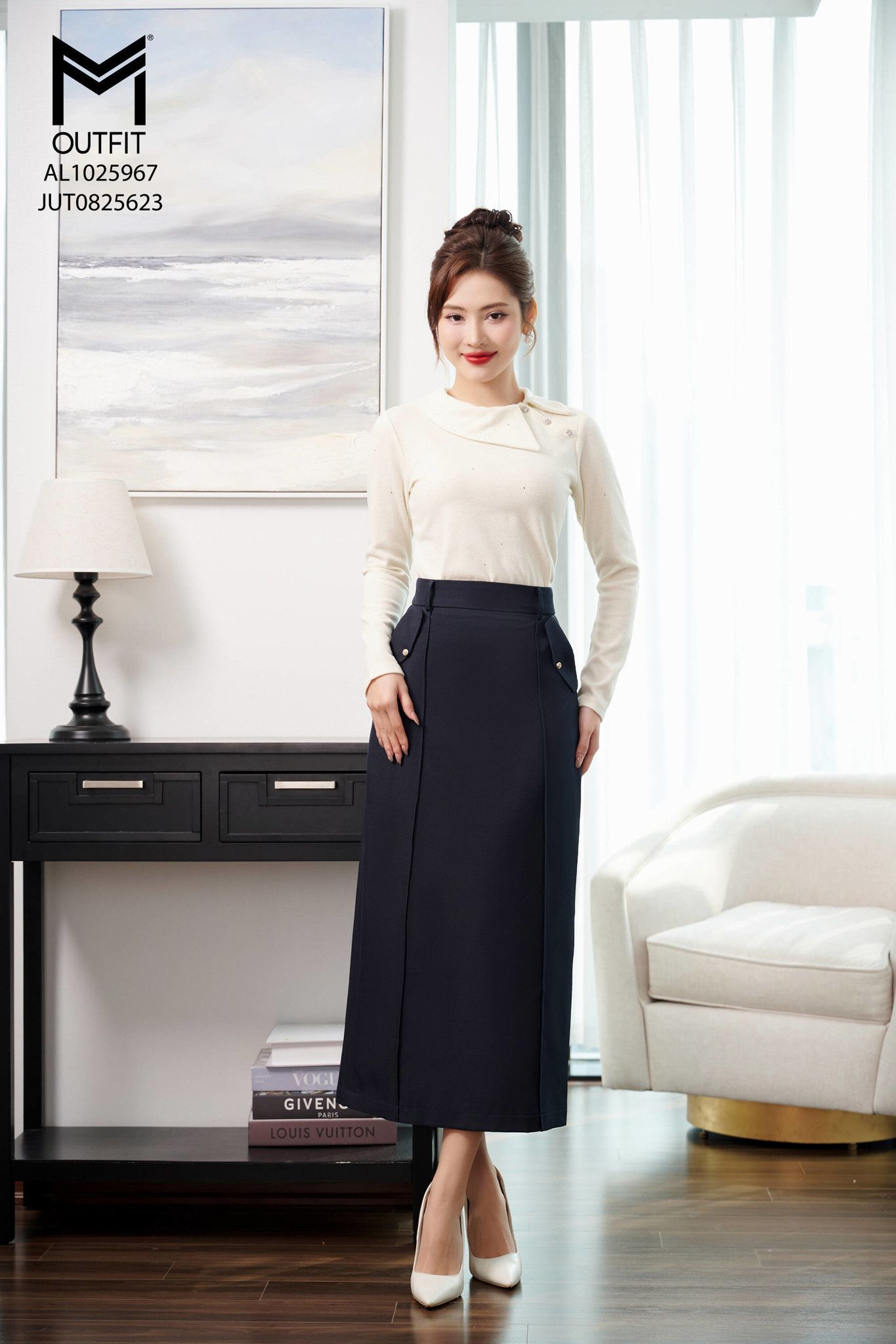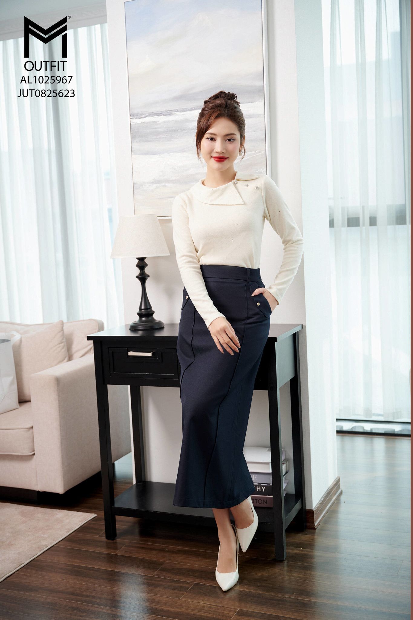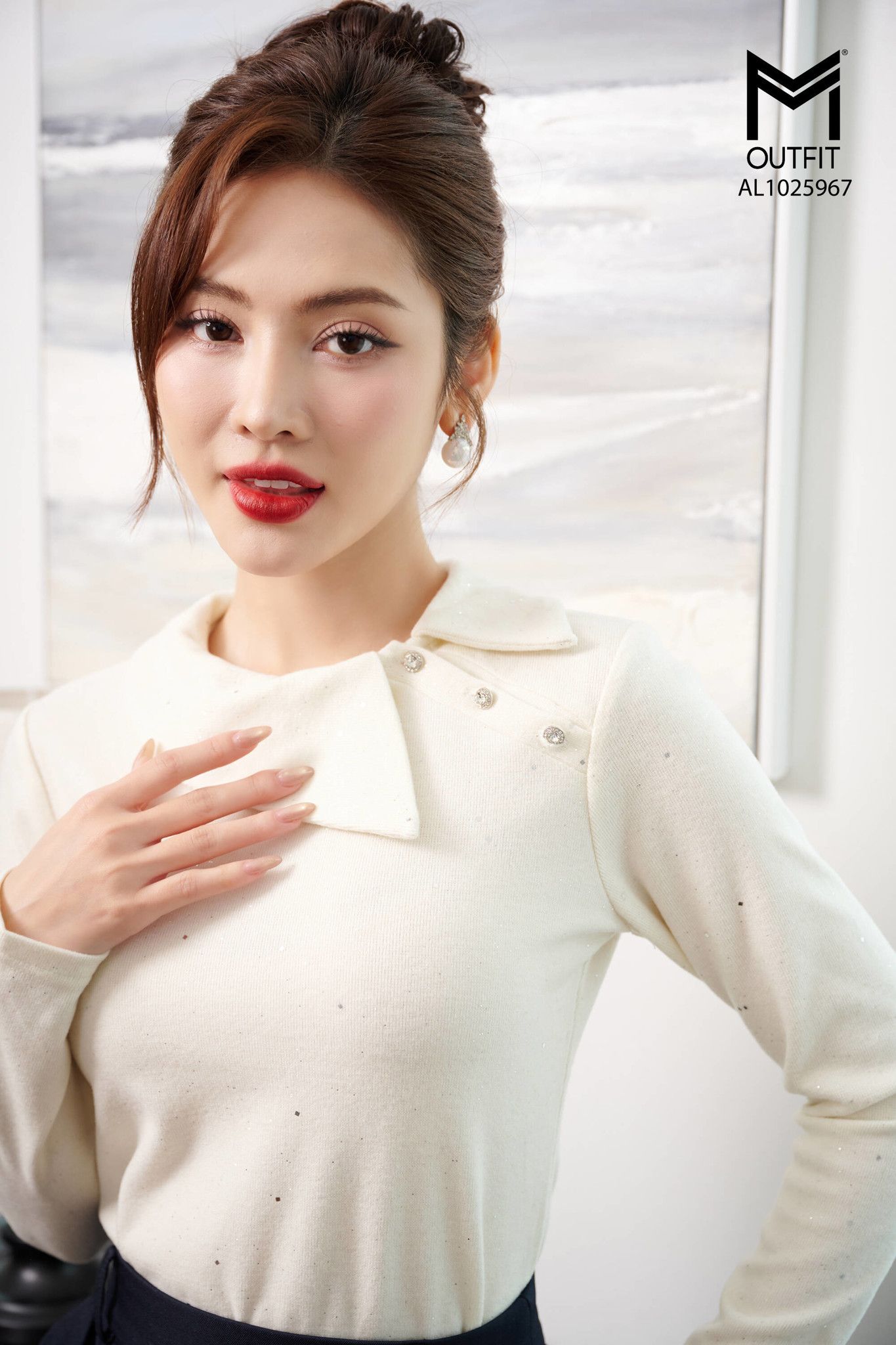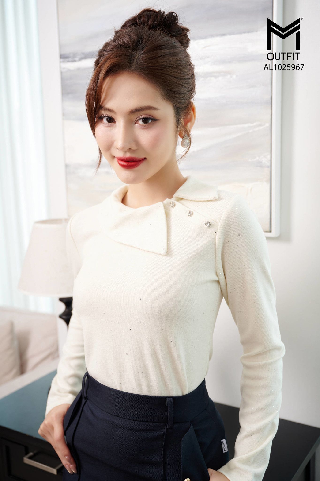 | Đặc điểm | Áo thun cách điệu cổ lệch đính cúc đá |