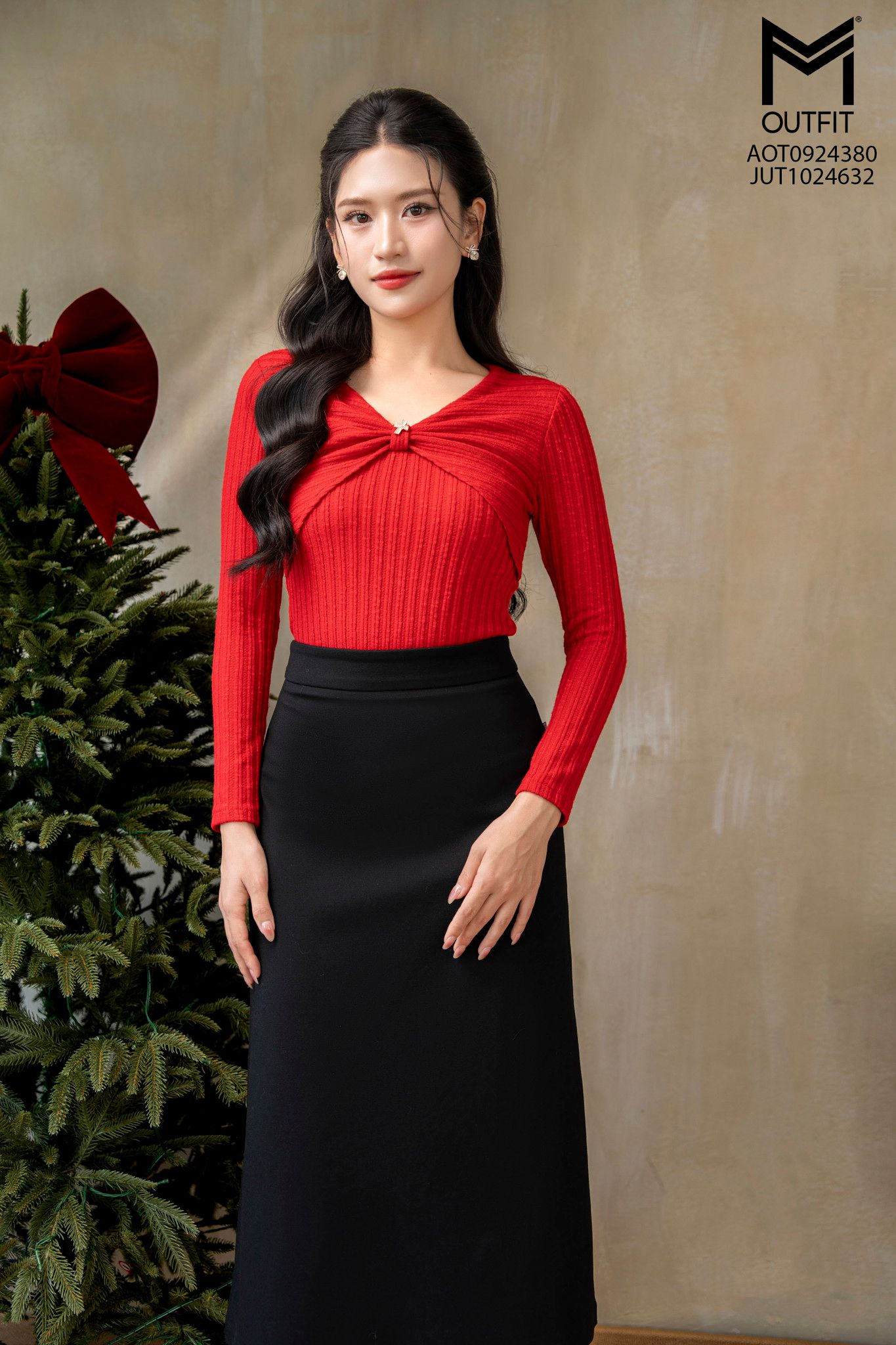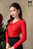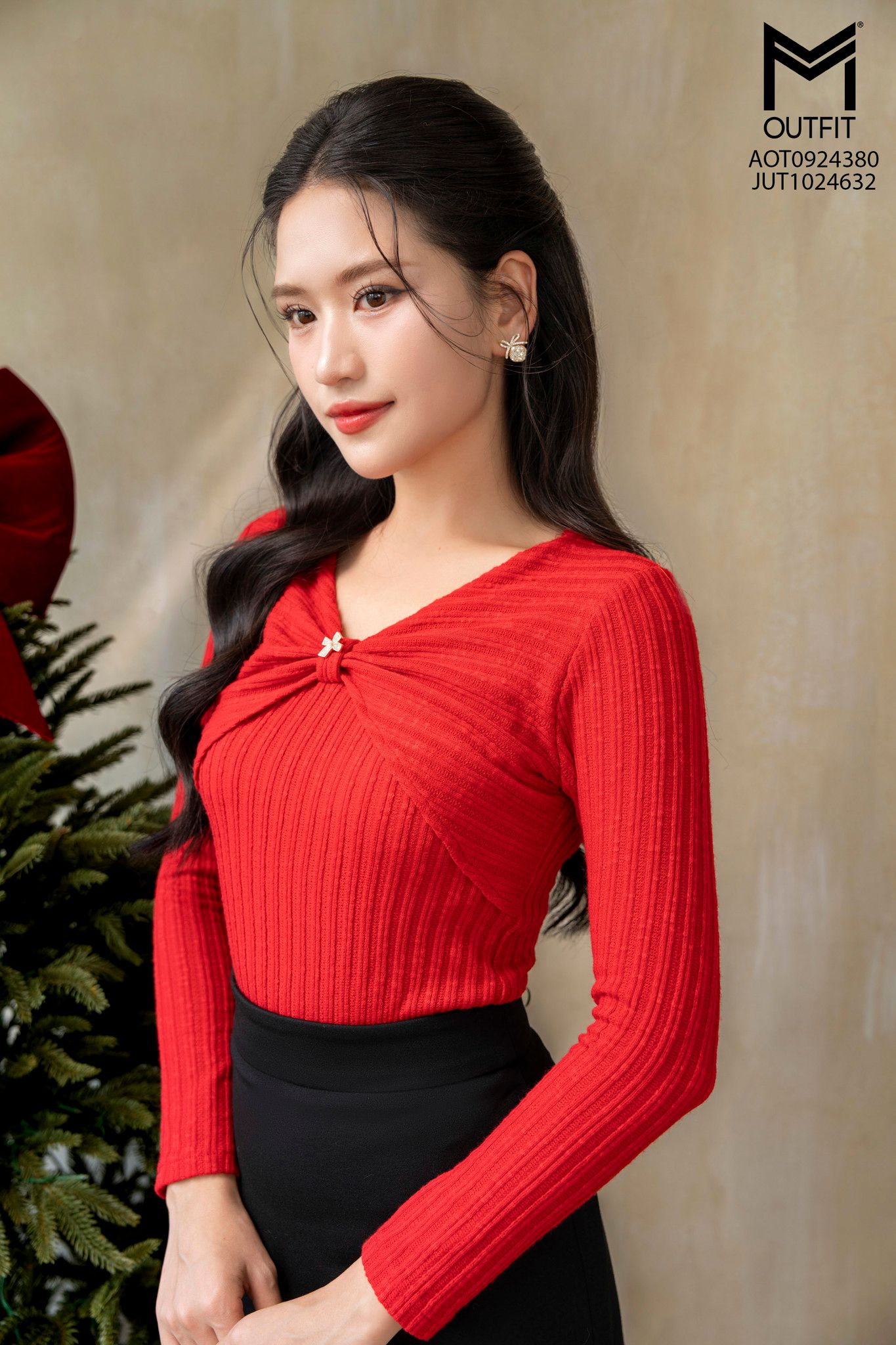 | Đặc điểm | Áo thun cổ có tà bong đính nơ đá |