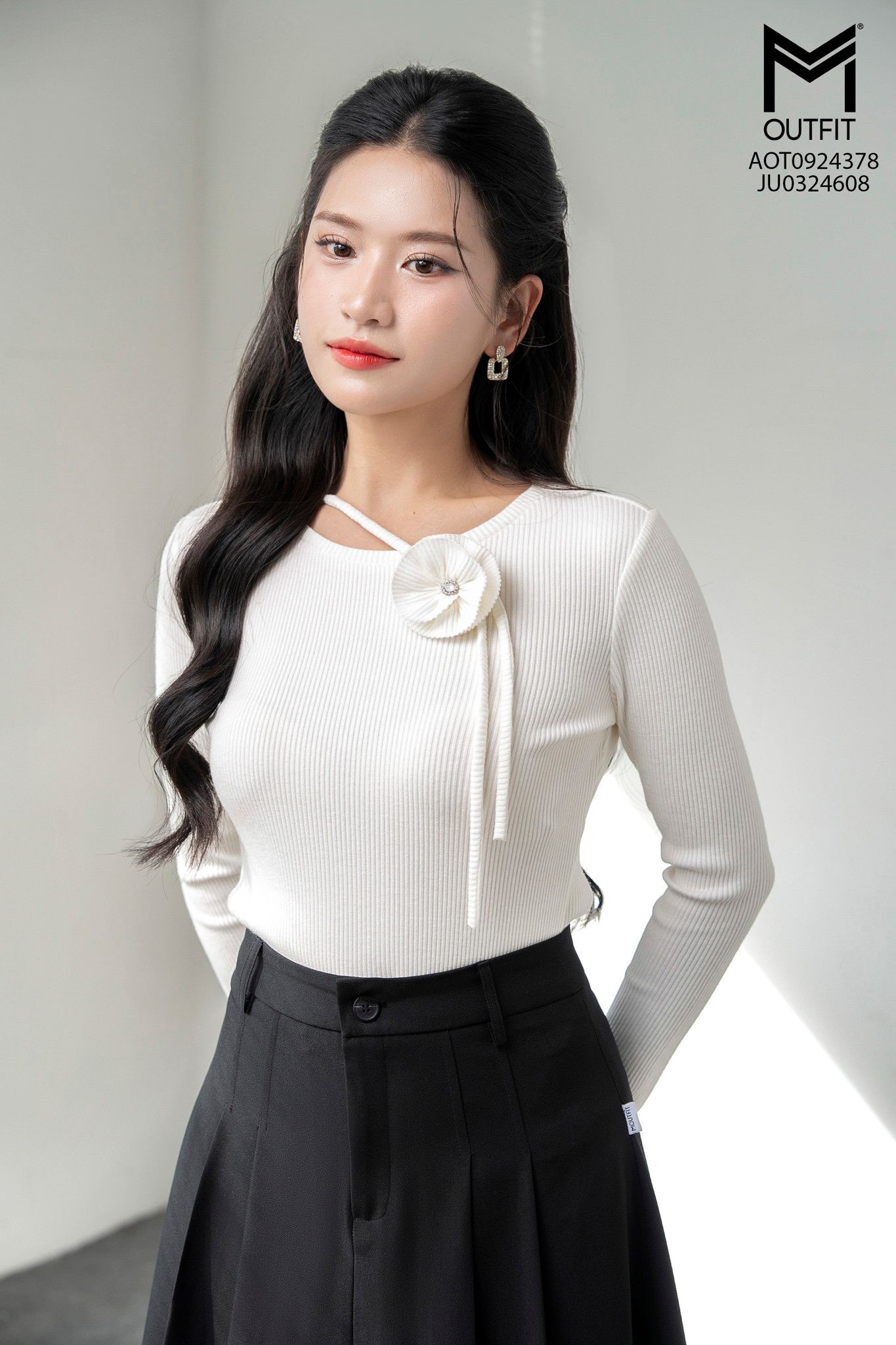| Đặc điểm | Áo thun ôm cổ đính hoa |