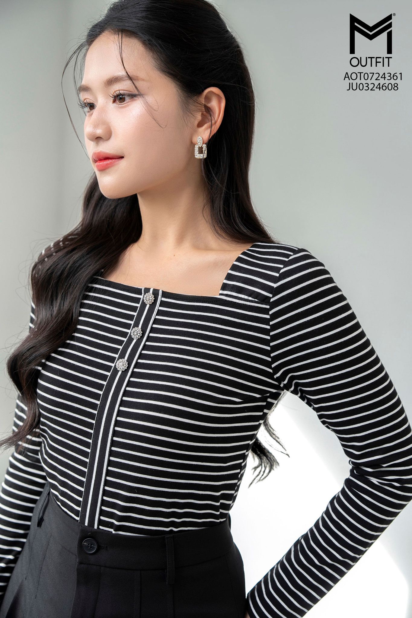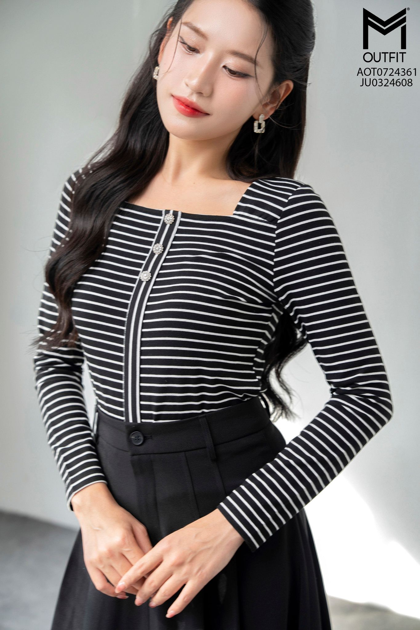 | Đặc điểm | Áo thun ôm tay dài cổ đính cúc đá |