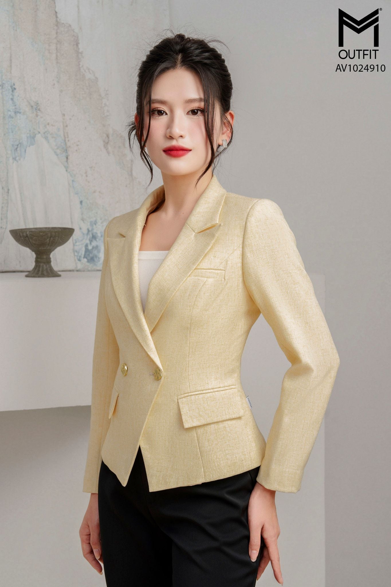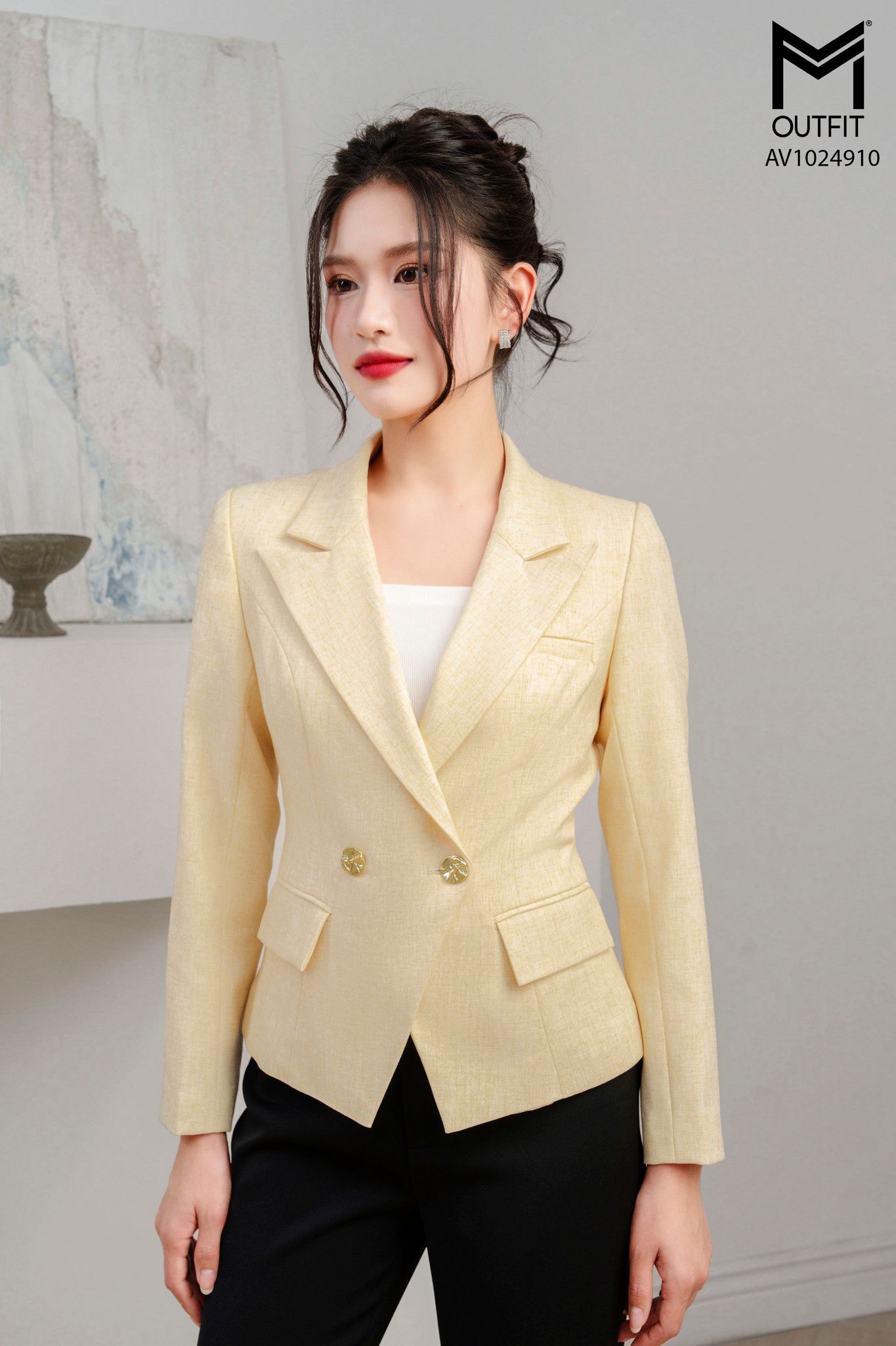 Áo vest cổ ve vếch hai hàng khuy vạt chéo