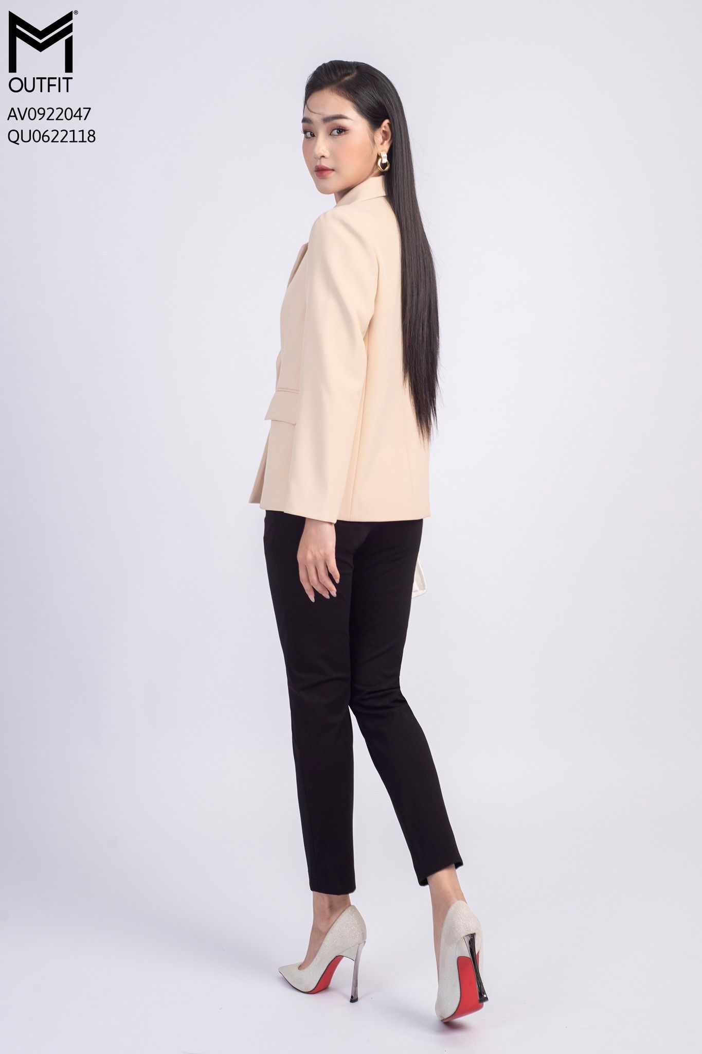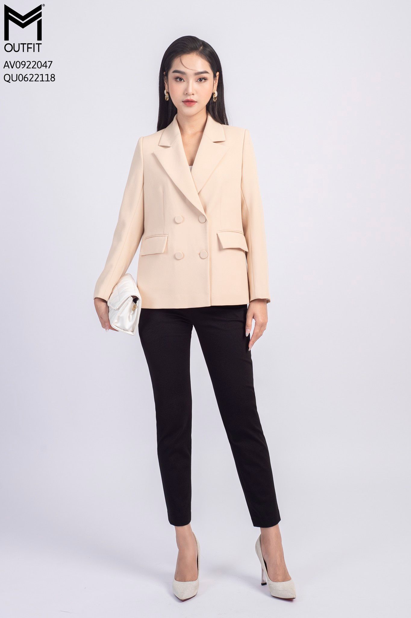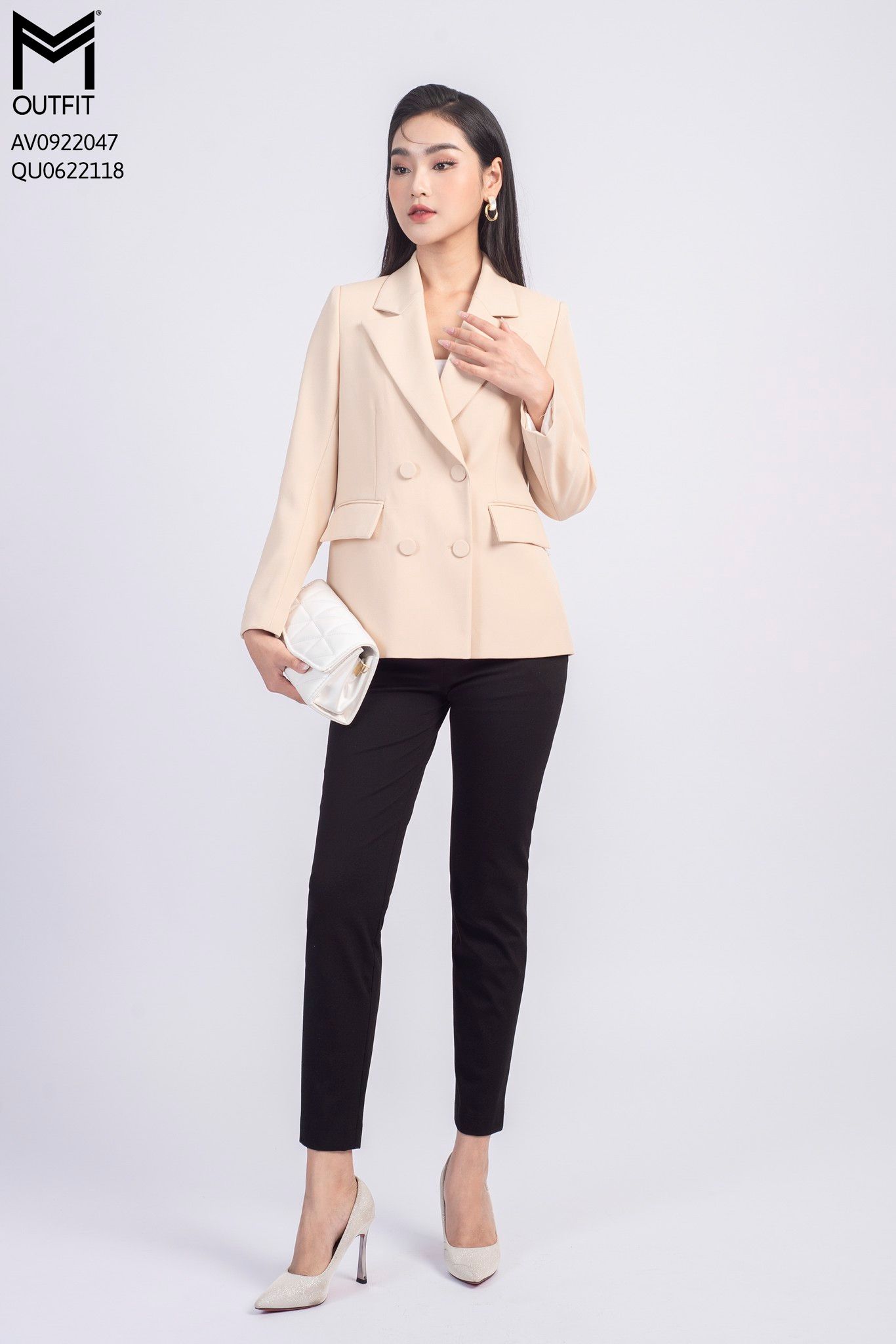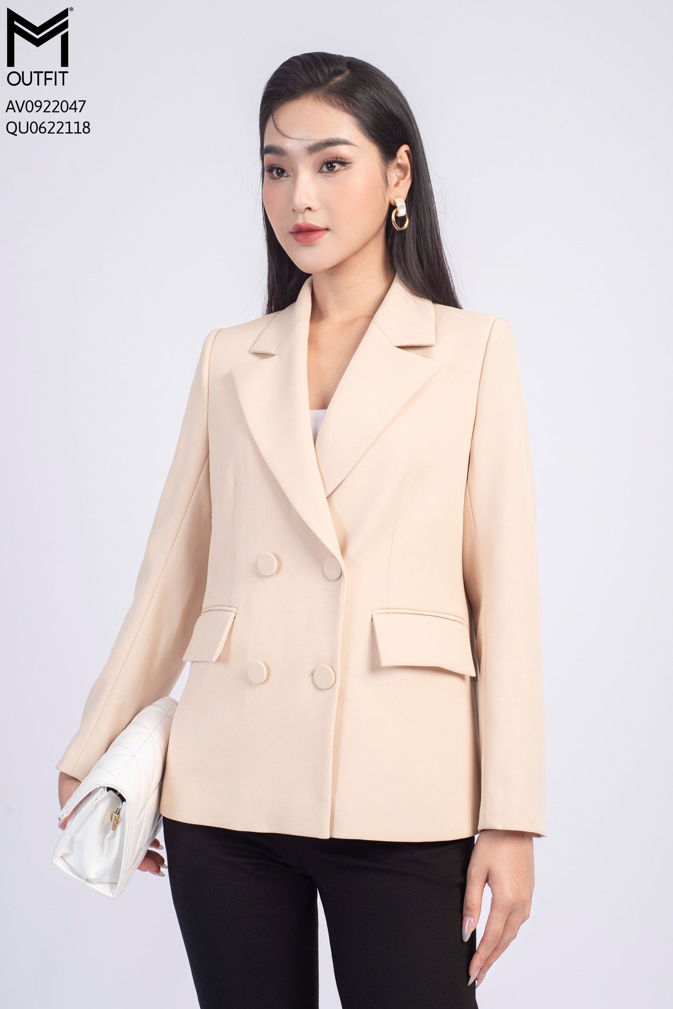 | Đặc điểm | Áo vest dáng suông đính cúc bọc |