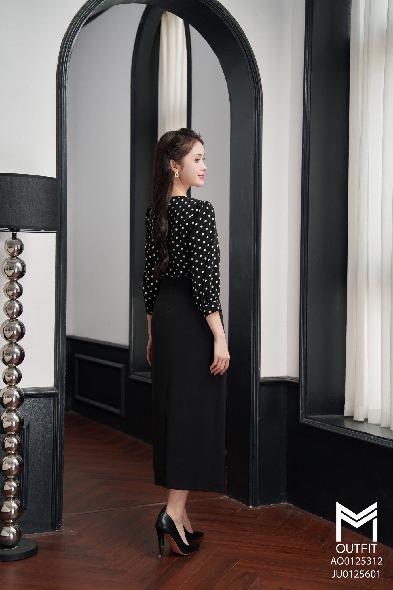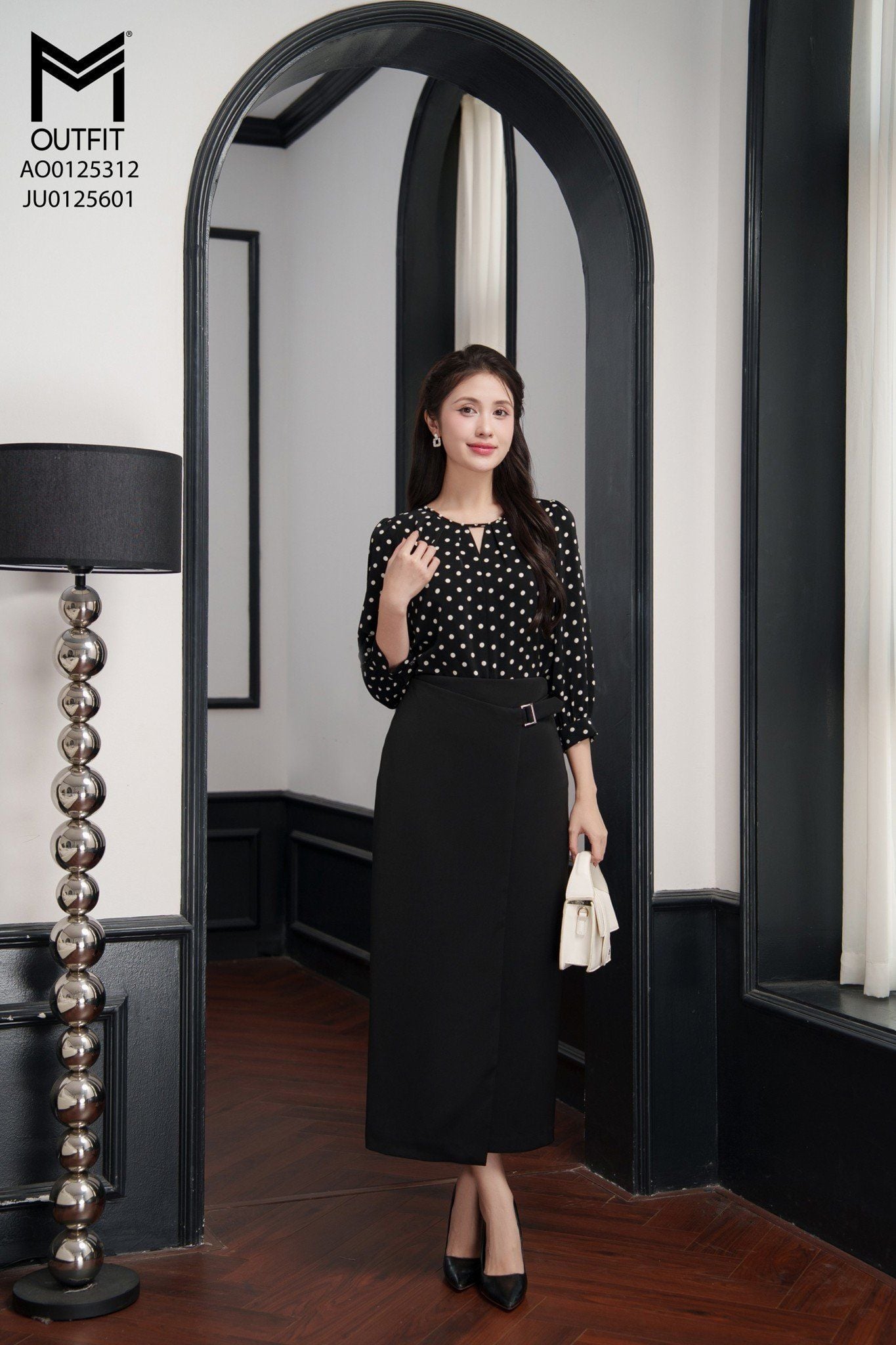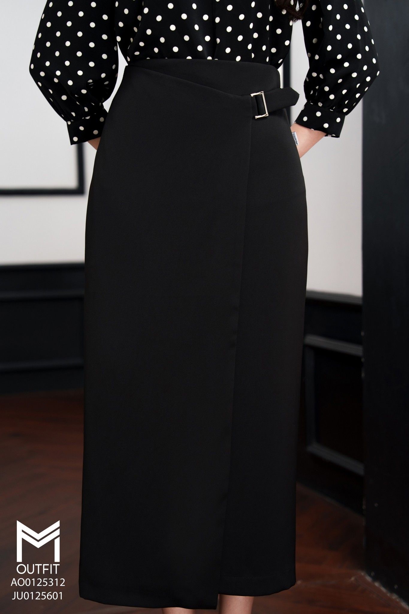 | Đặc điểm | Chân váy bút chì thẳng có đai cài dài 85cm |