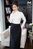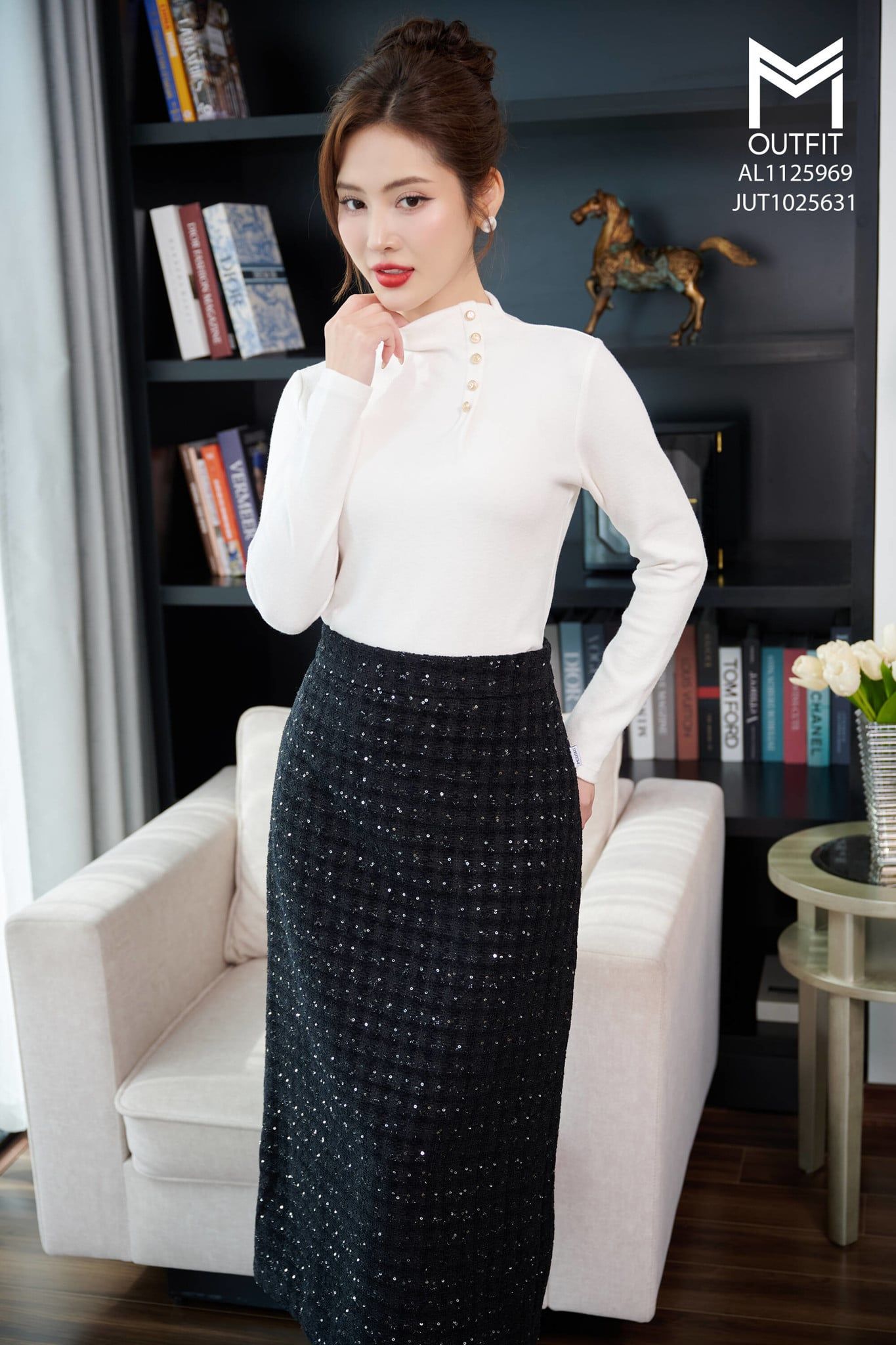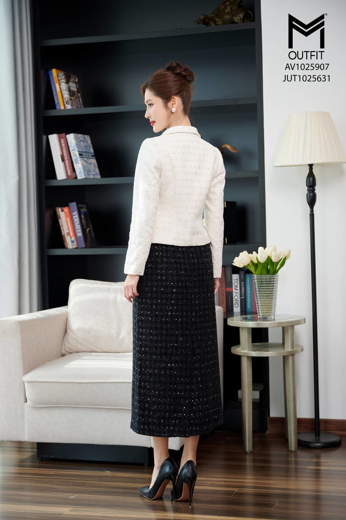 | Đặc điểm | Chân váy dạ kim sa dáng A mix với áo vest AV1025907 |