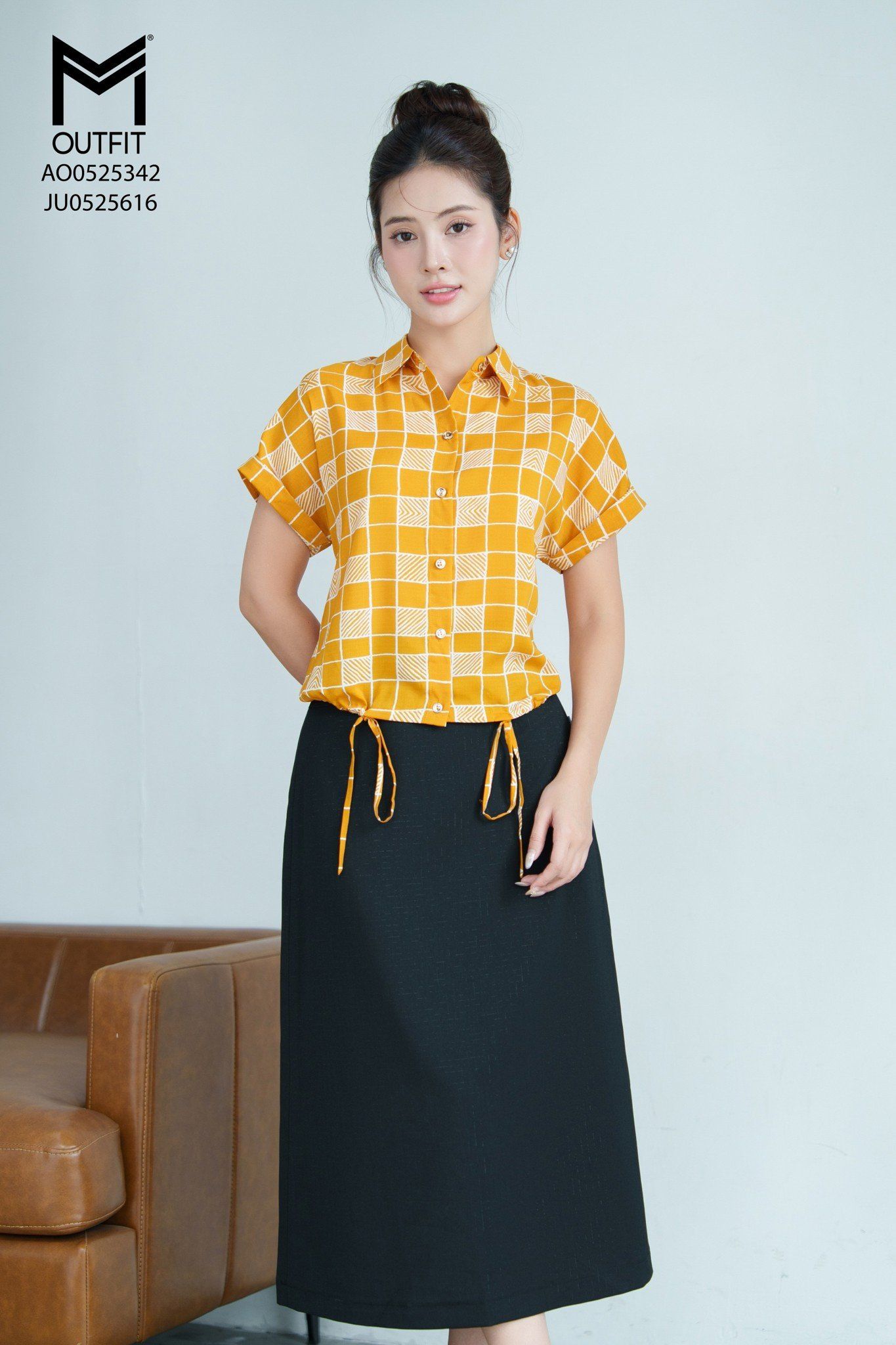 | Đặc điểm | Chân váy dáng A cạp pha vải trắng mix với áo AO0525344 |