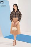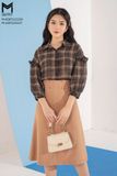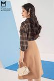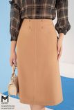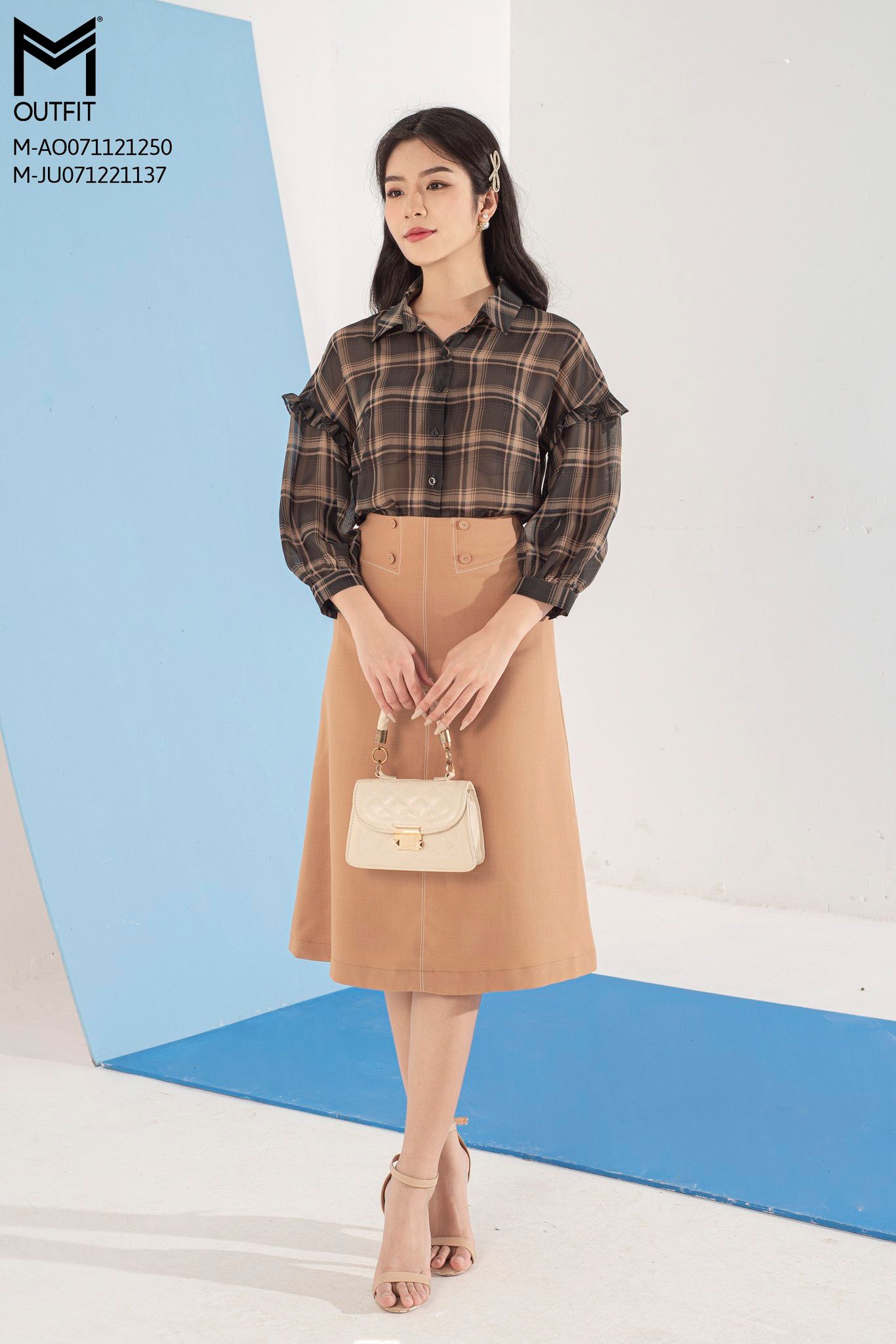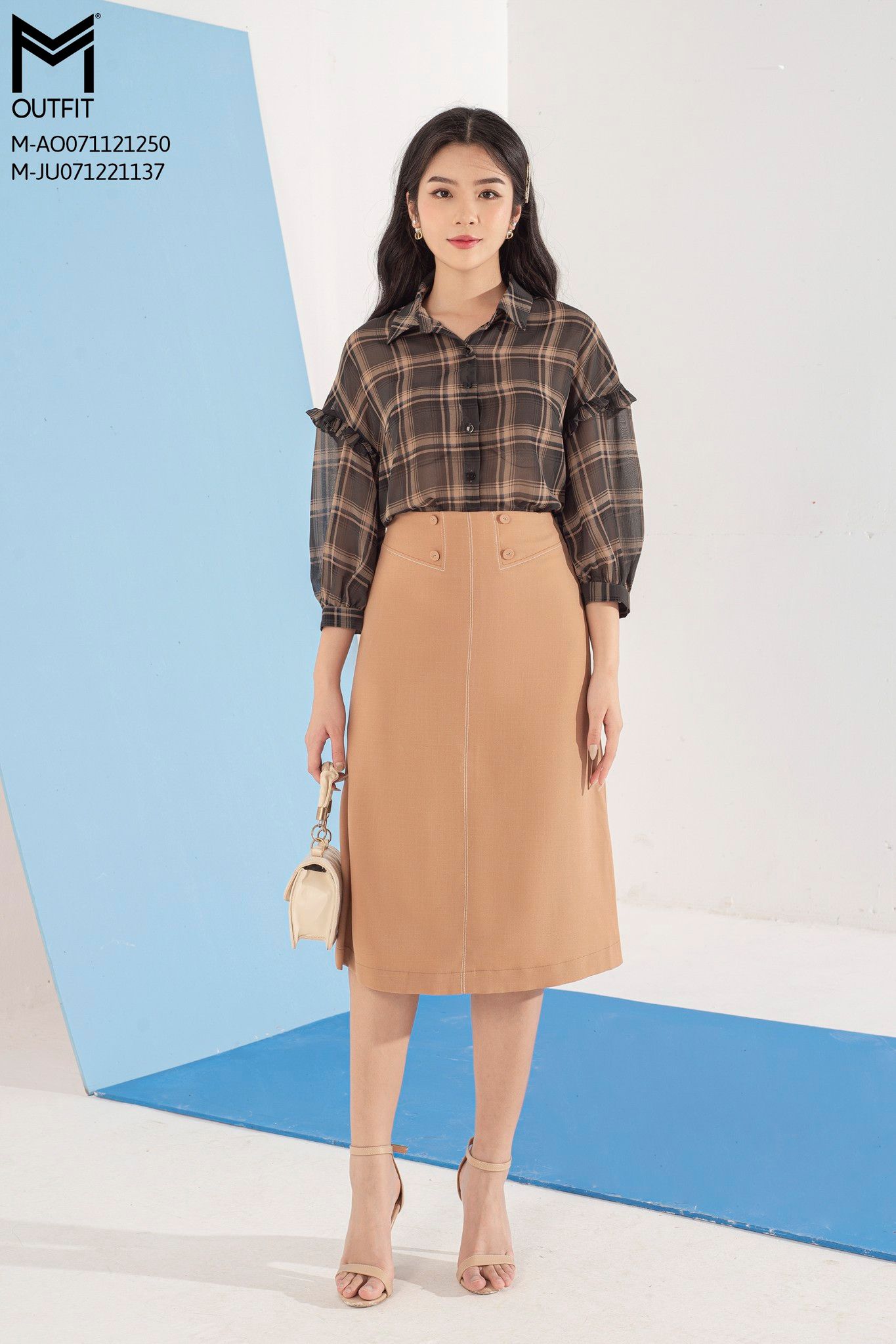 Chân váy dáng A, trần chỉ, đính cúc bọc