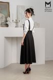 Chân váy xòe cài đai yếm đính cúc bọc