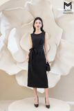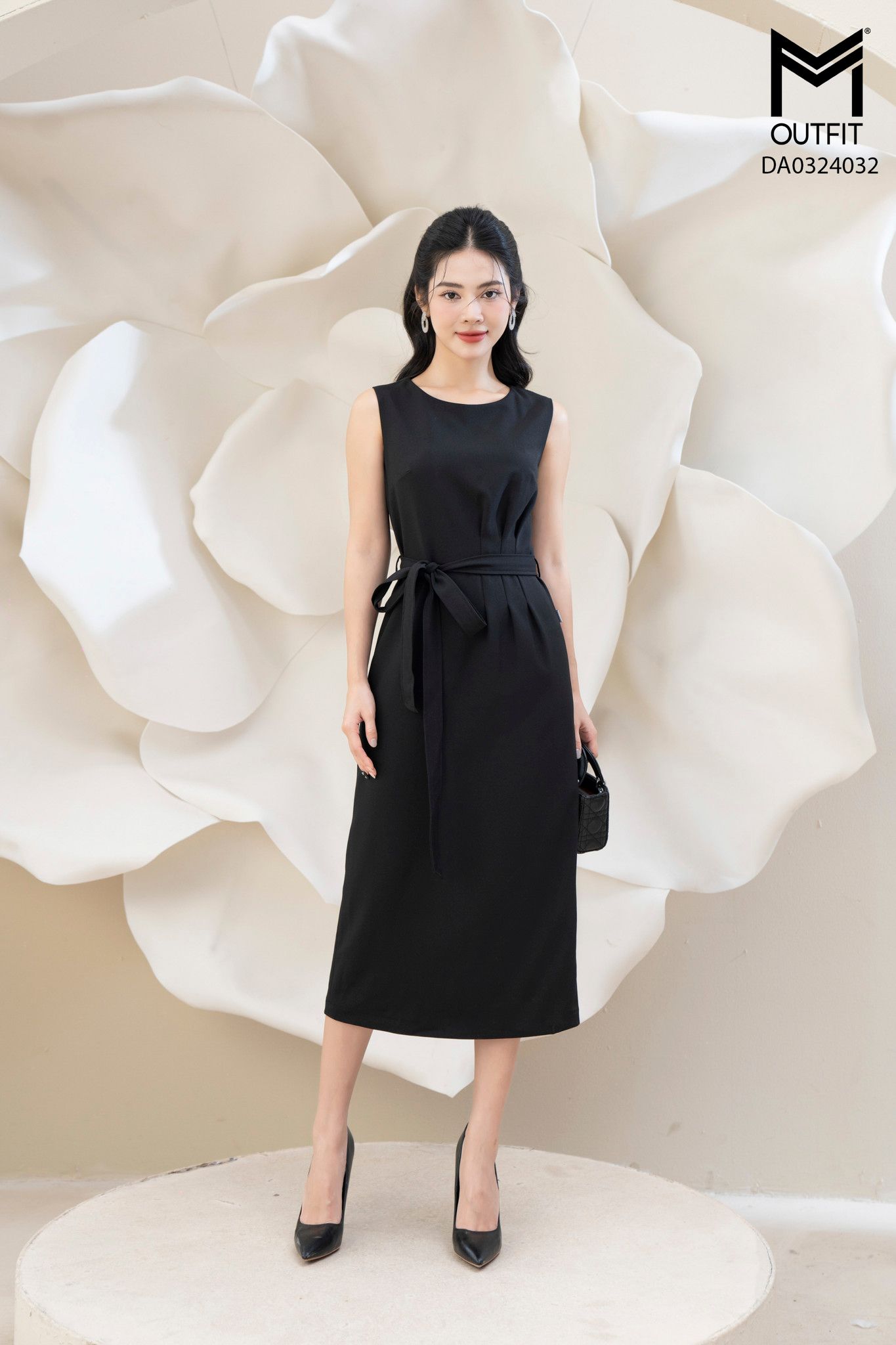 | Đặc điểm | Đầm bút chì sát nách xếp li eo buộc đai |