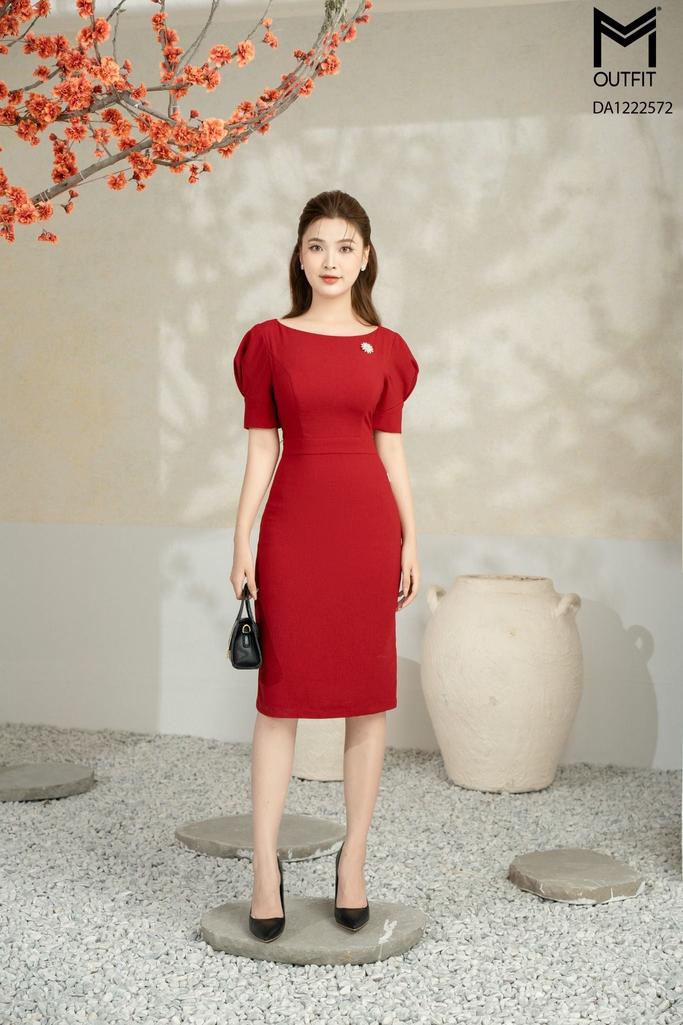 | Đặc điểm | Đầm bút chì thẳng cài hoa đá |