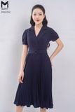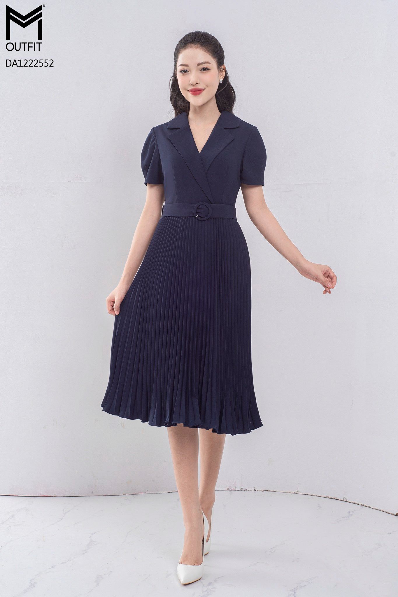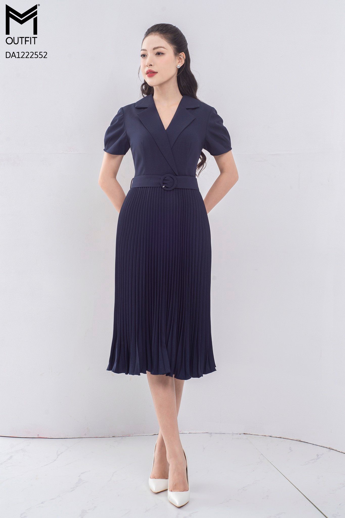 Đầm cổ hai ve, tùng dập ly xõa kèm đai