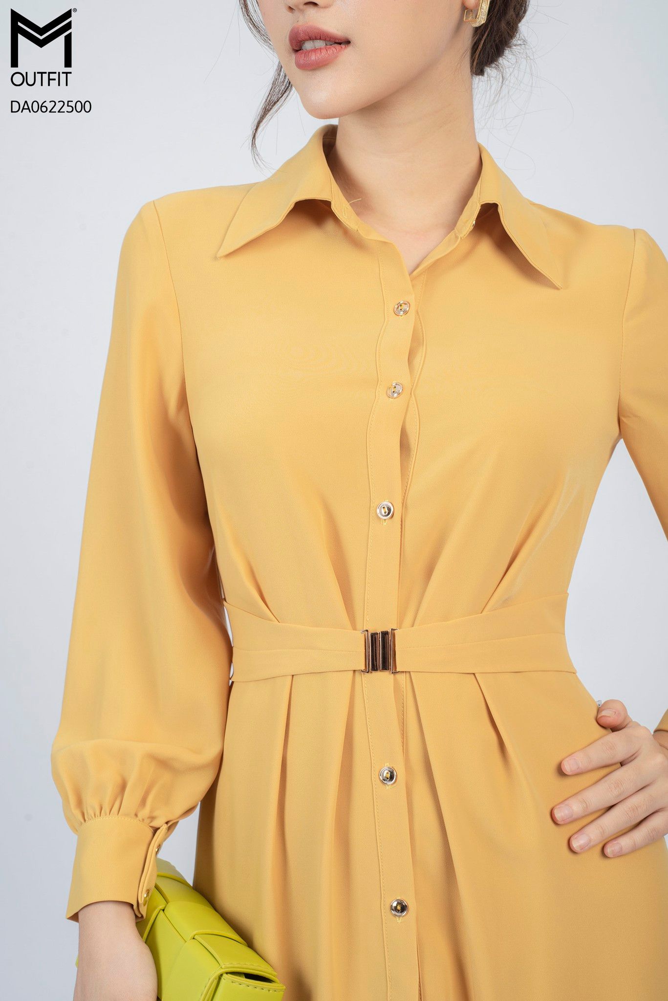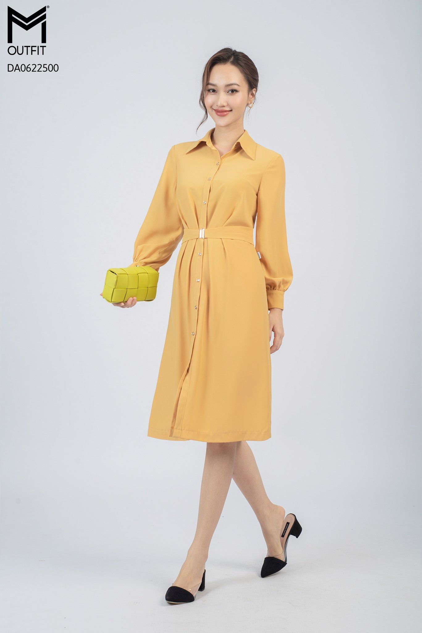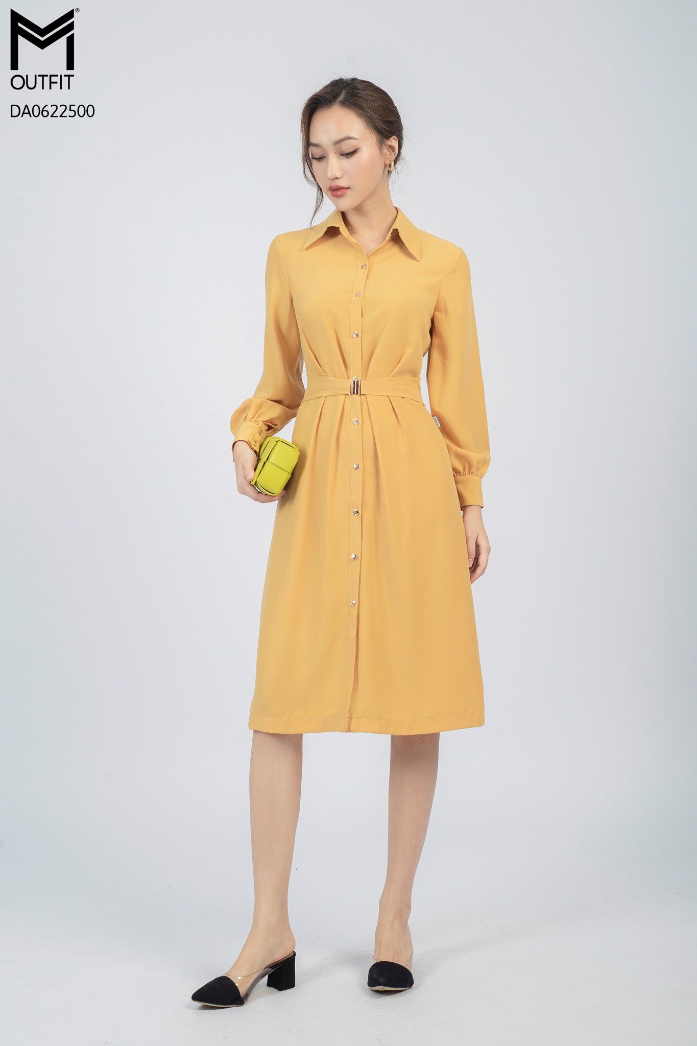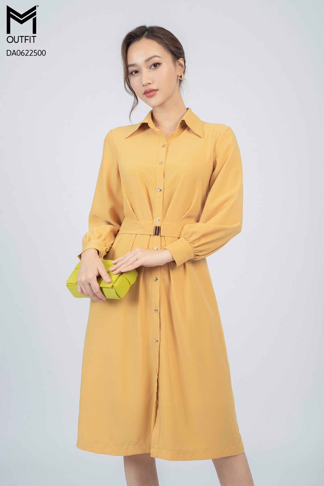 | Đặc điểm | Đầm dáng A dài tay kèm đai mở |