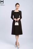 Đầm dáng A, tay dài, đính nơ trước ngực