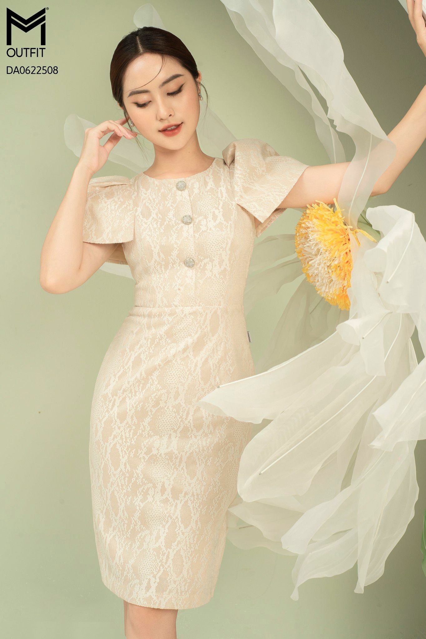 | Đặc điểm | Đầm dáng bút chì, đính cúc đá TT |