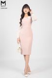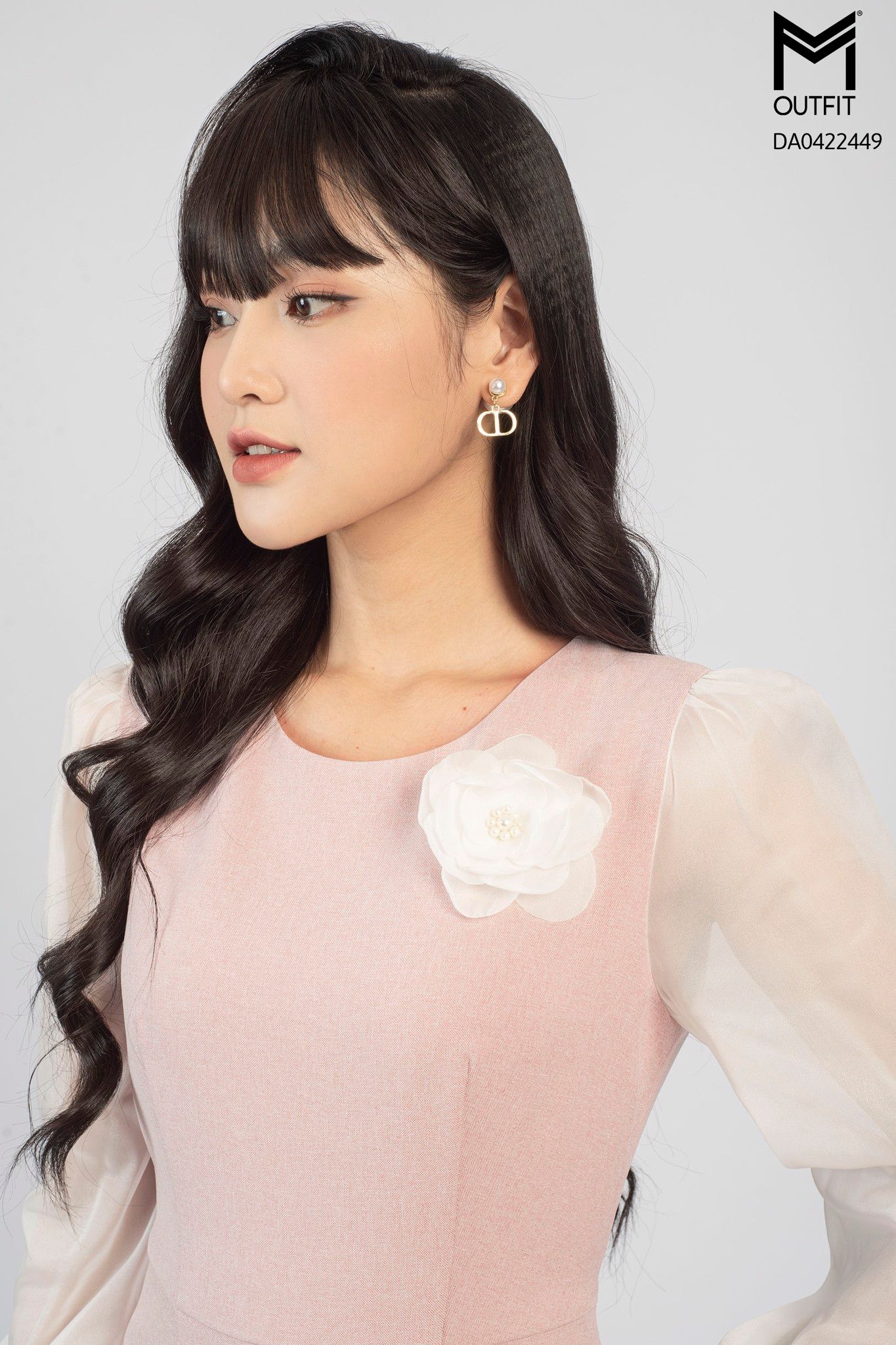 Đầm dáng bút chì, tay phối voan, đính hoa TT