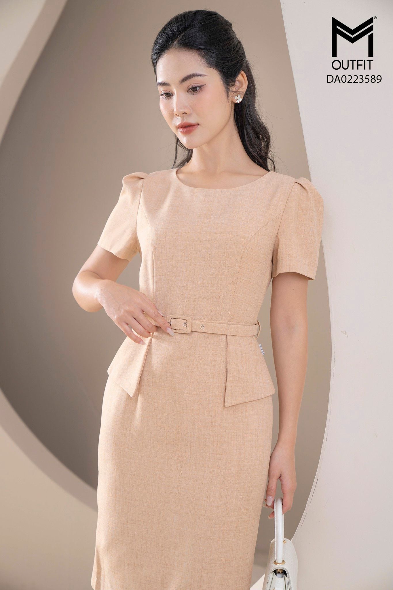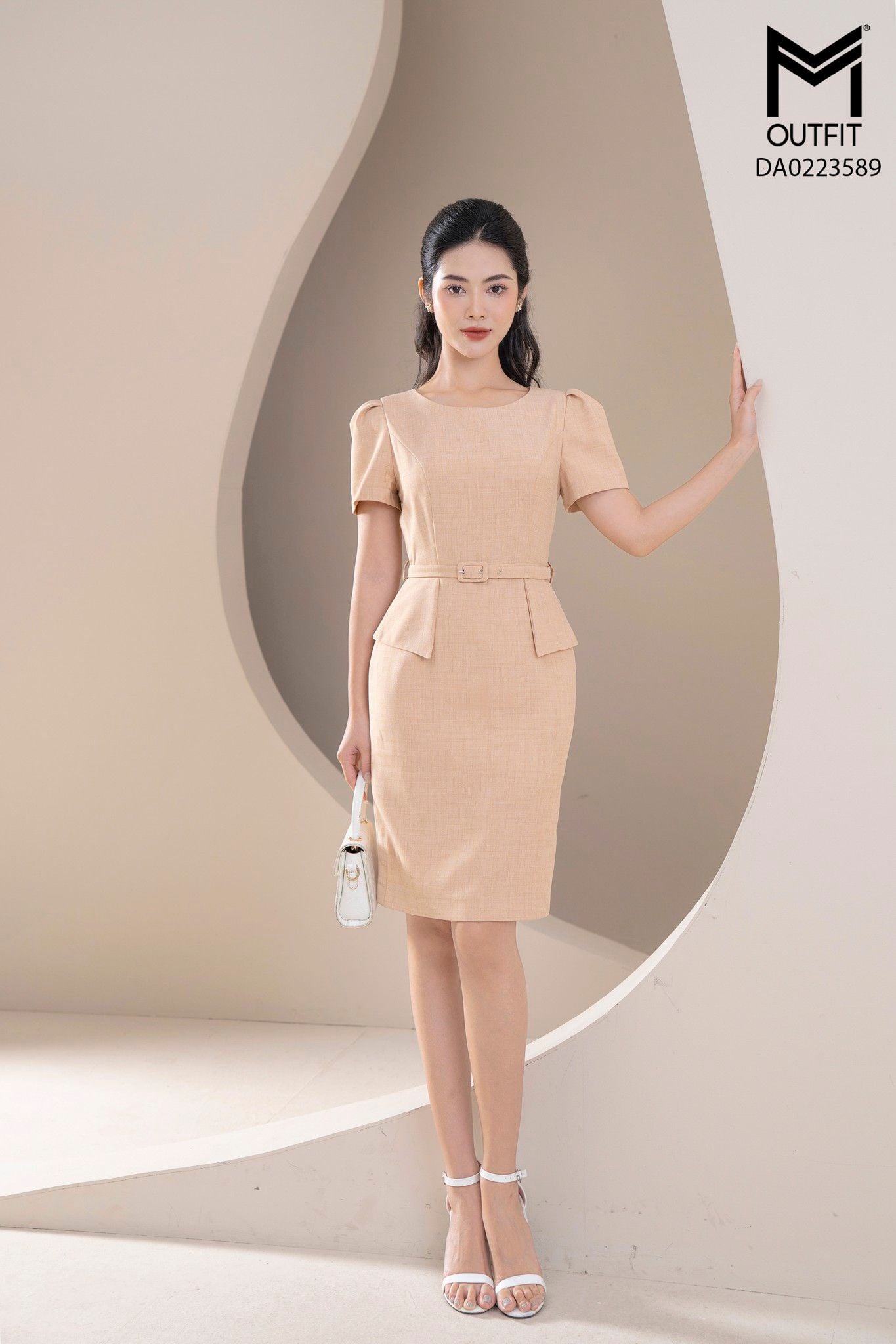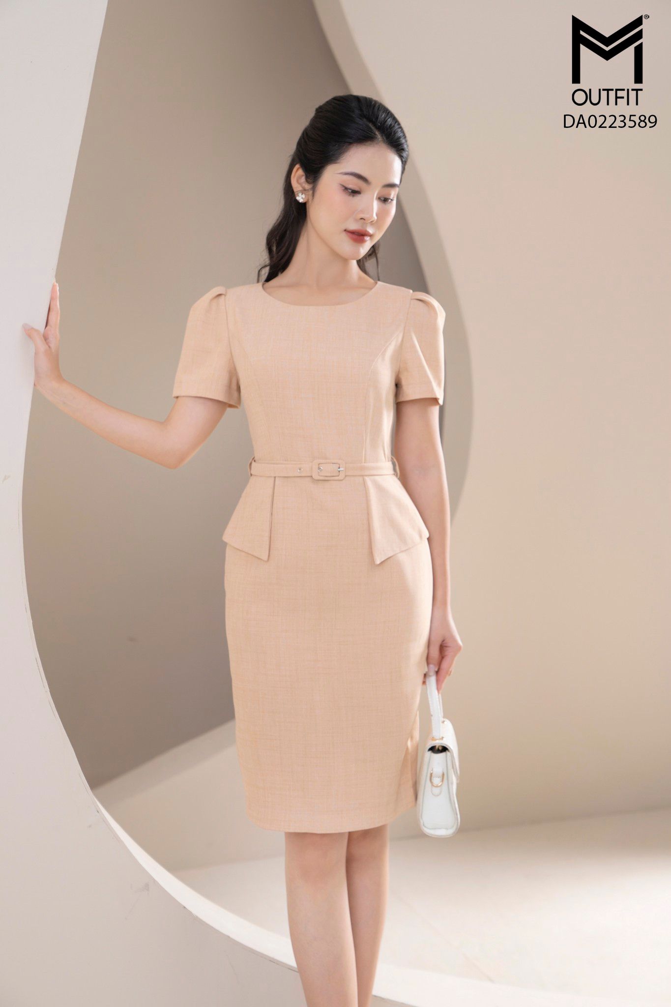 | Đặc điểm | Đầm dáng bút chì thẳng, tà bong kèm đai |