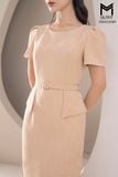 Đầm dáng bút chì thẳng, tà bong kèm đai