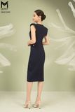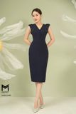 Đầm dáng ôm, cổ V, đính cúc bọc TT