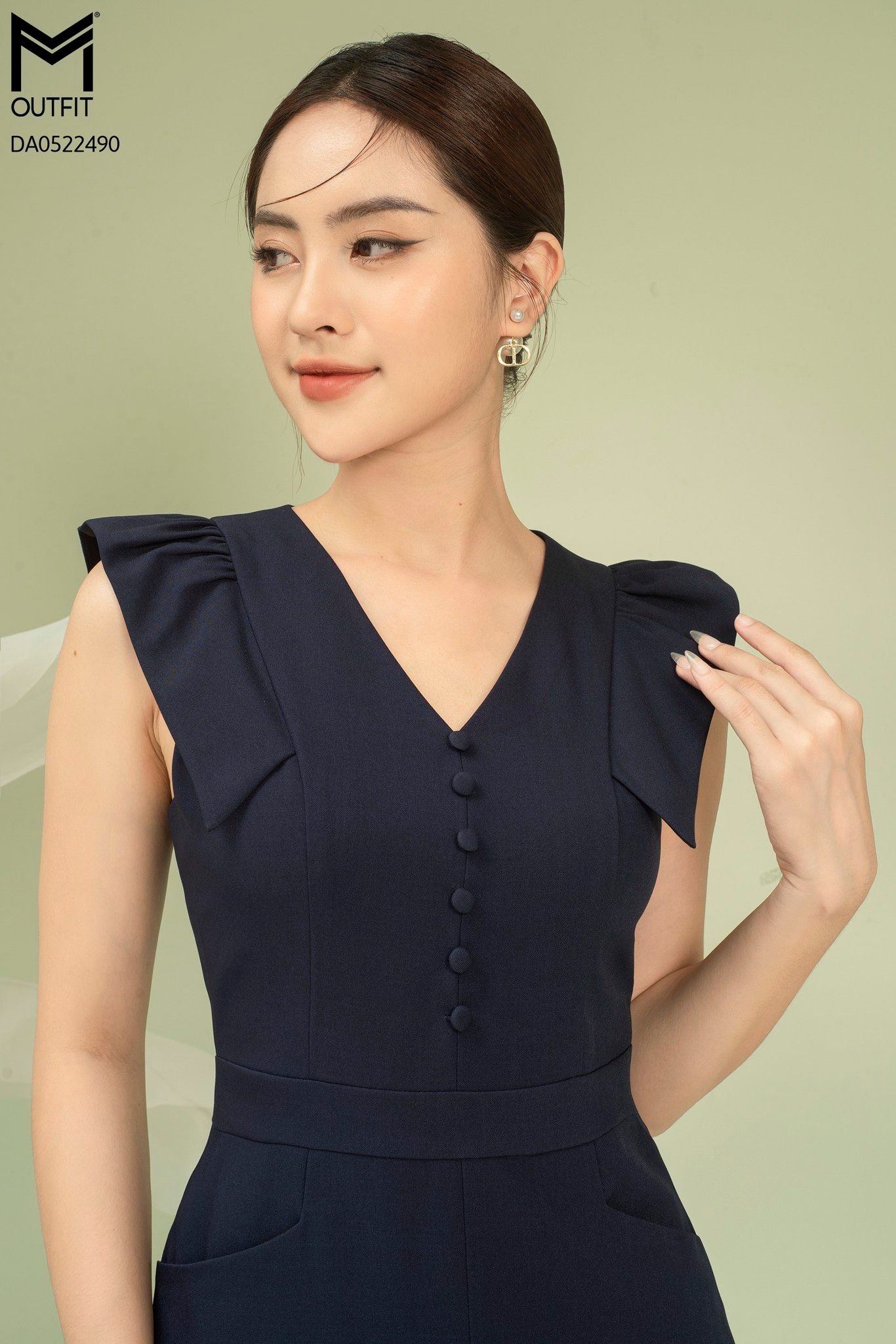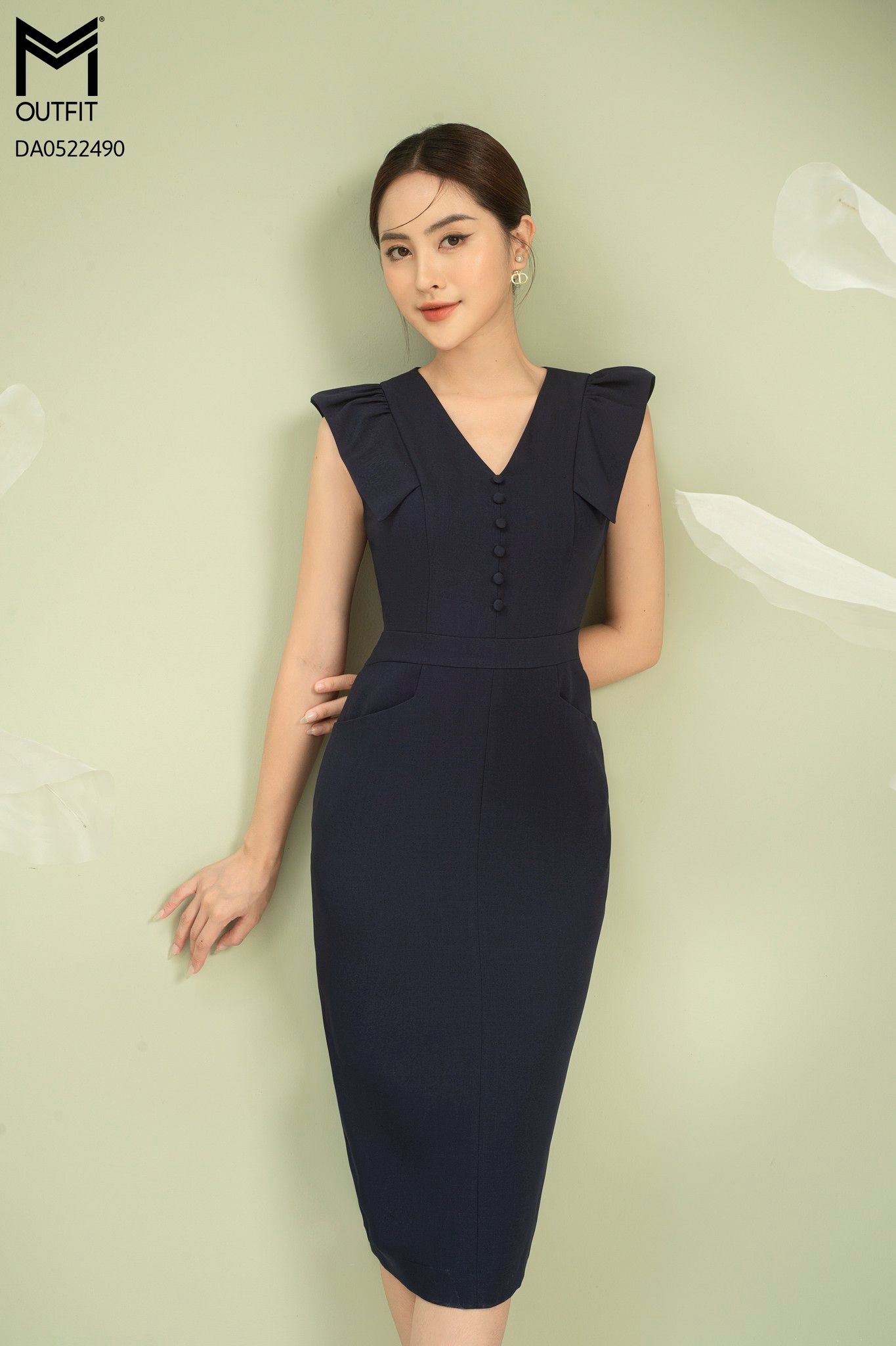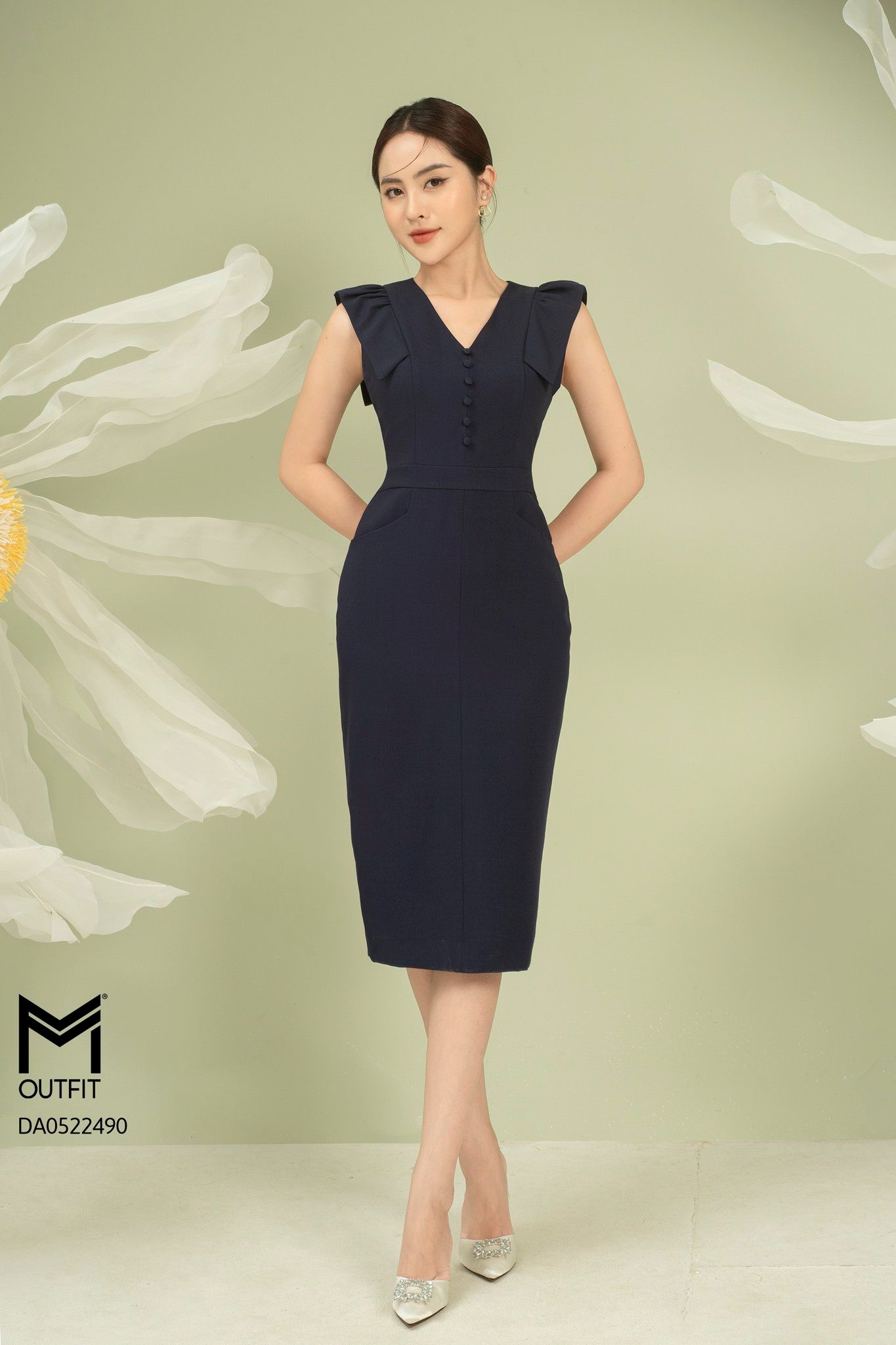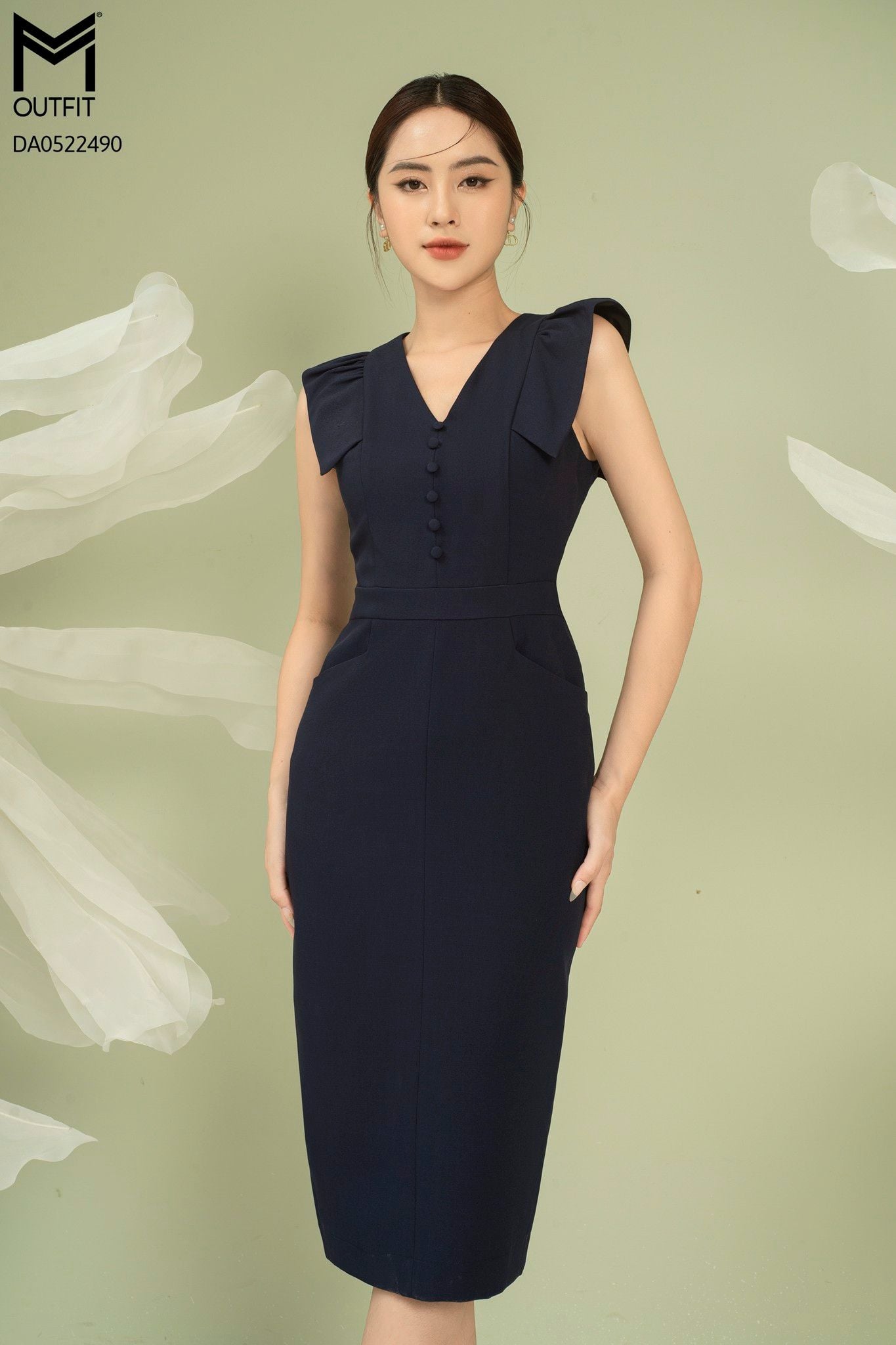 | Đặc điểm | Đầm dáng ôm, cổ V, đính cúc bọc TT |