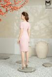 Đầm dáng ôm, tà bong xếp ly cài trâm đá