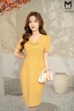 Đầm dáng ôm, tà bong xếp ly cài trâm đá