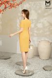 | Đặc điểm | Đầm dáng ôm, tà bong xếp ly cài trâm đá |