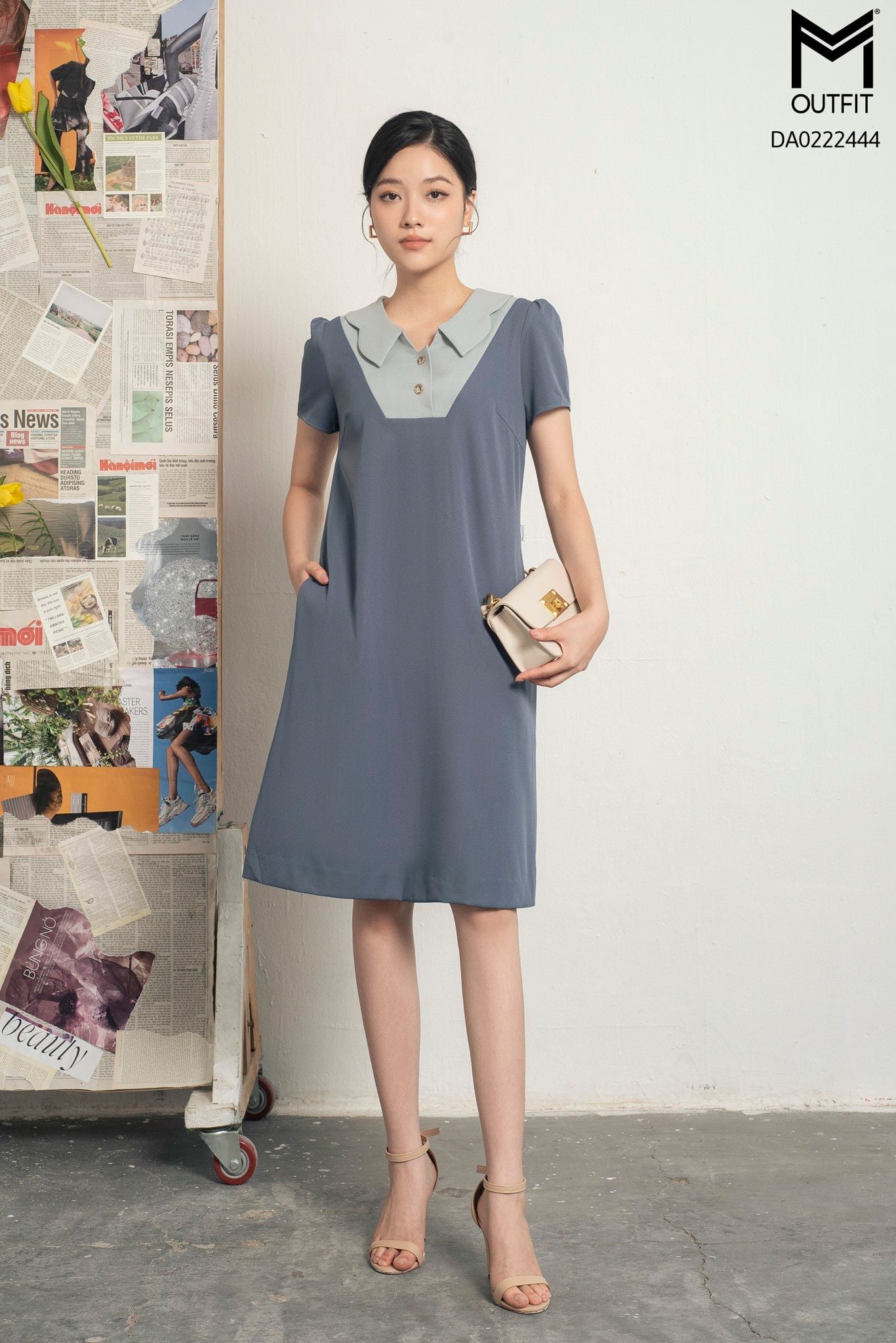| Đặc điểm | Đầm dáng suông, cổ bẻ, có túi hai bên |