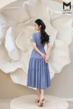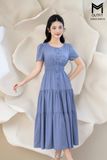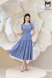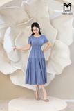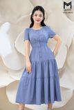 Đầm dáng xòe chun eo tùng nhún nẹp bong đính cúc bọc