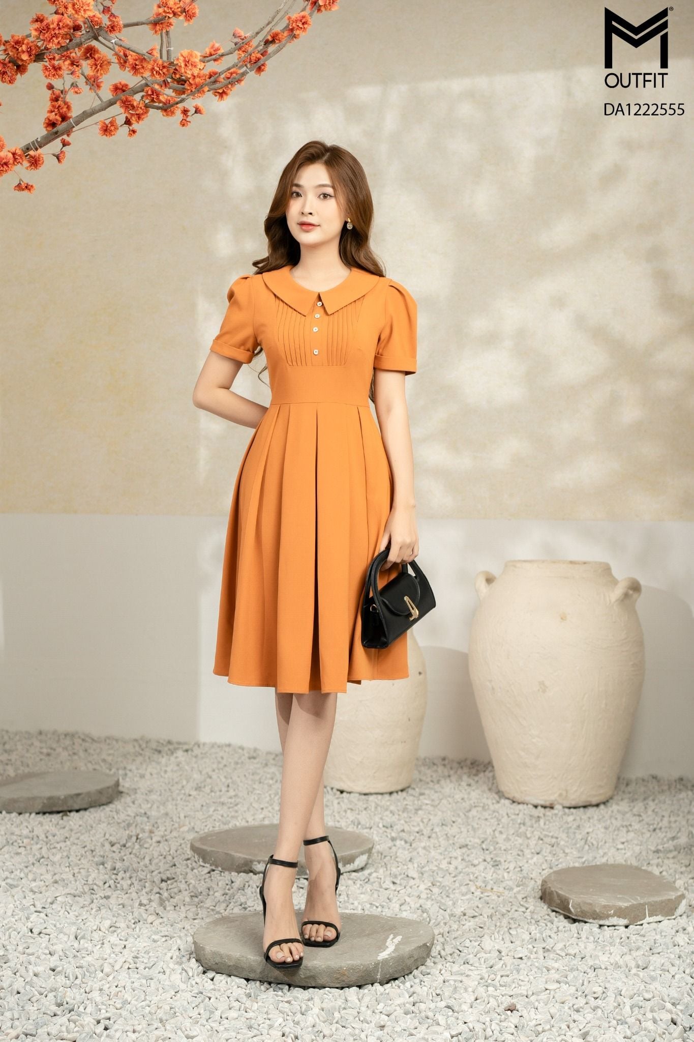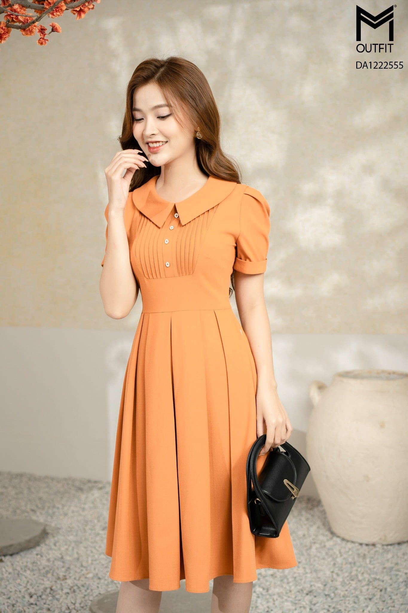Đầm dáng xòe cổ sen, tùng xếp ly