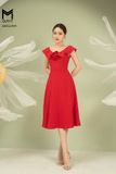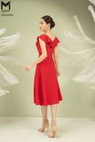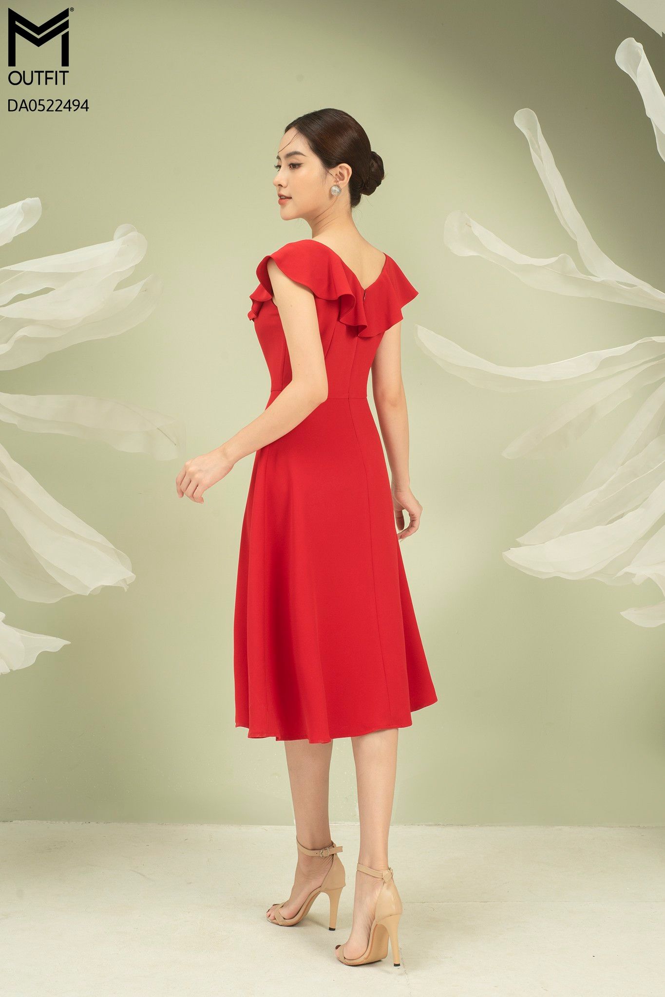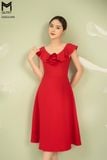 Đầm dáng xòe, cổ V bèo rủ đính hoa TT