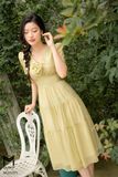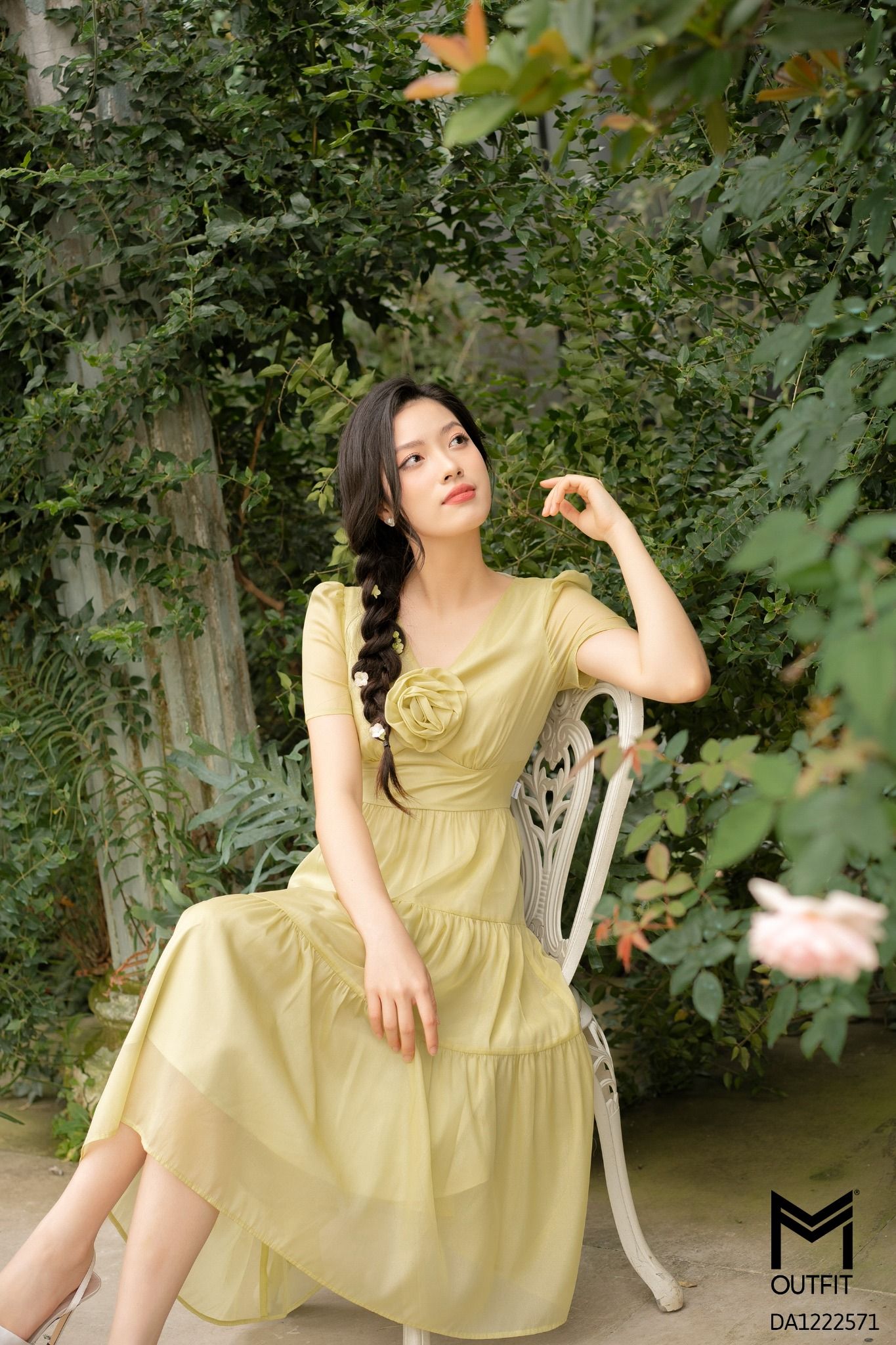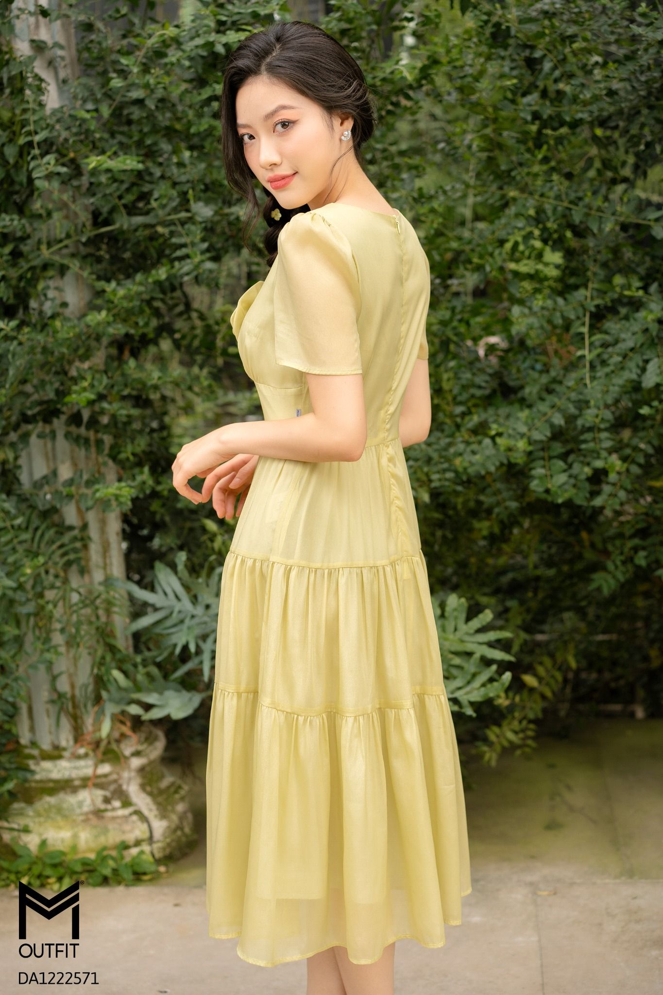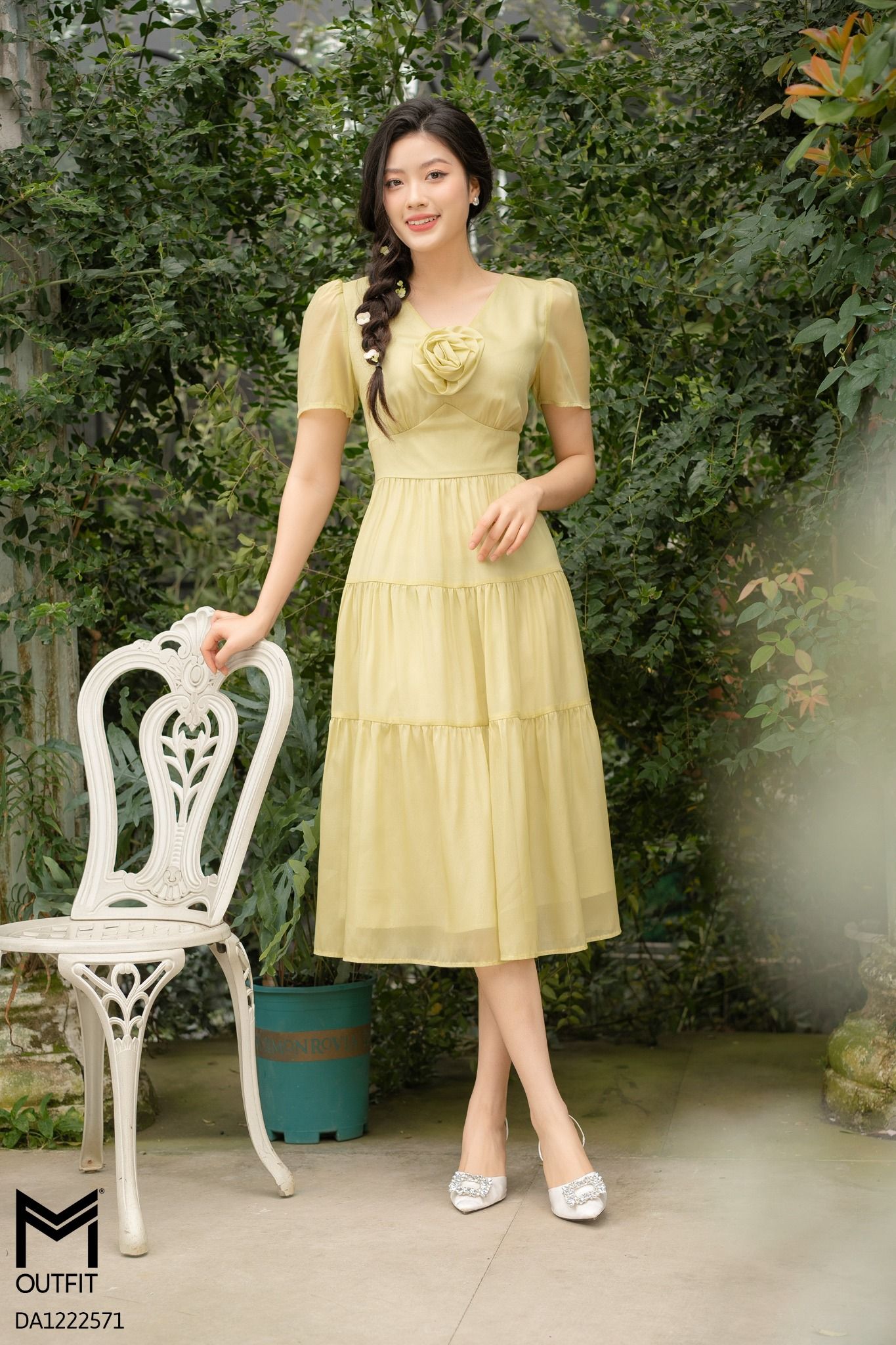 | Đặc điểm | Đầm dáng xòe, cổ V đính hoa |