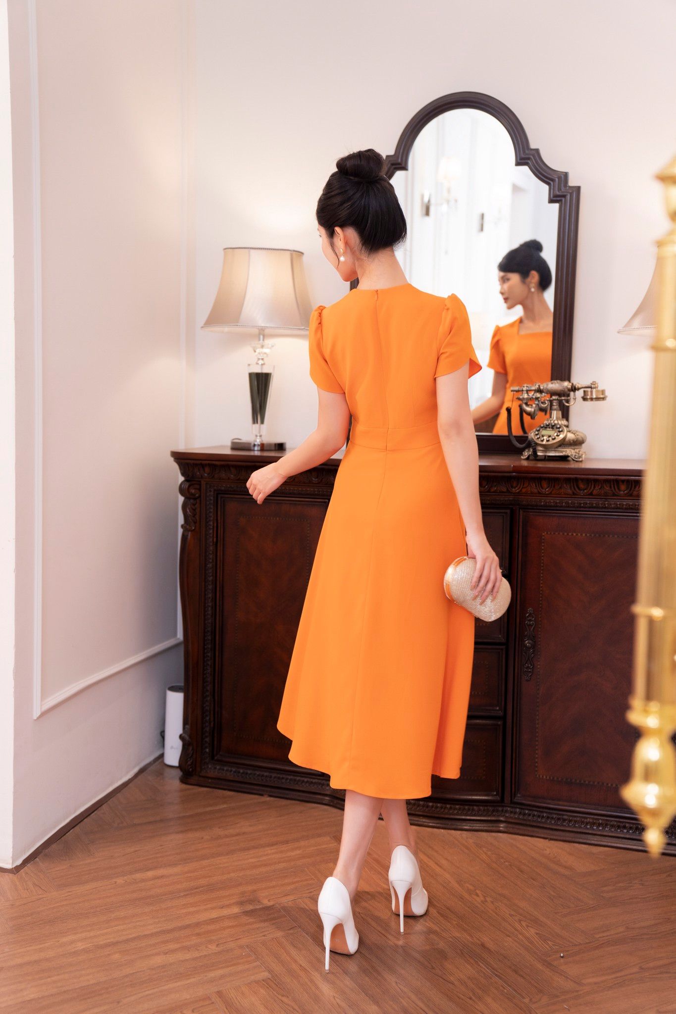 | Đặc điểm | Đầm dáng xòe, đính hoa TT |