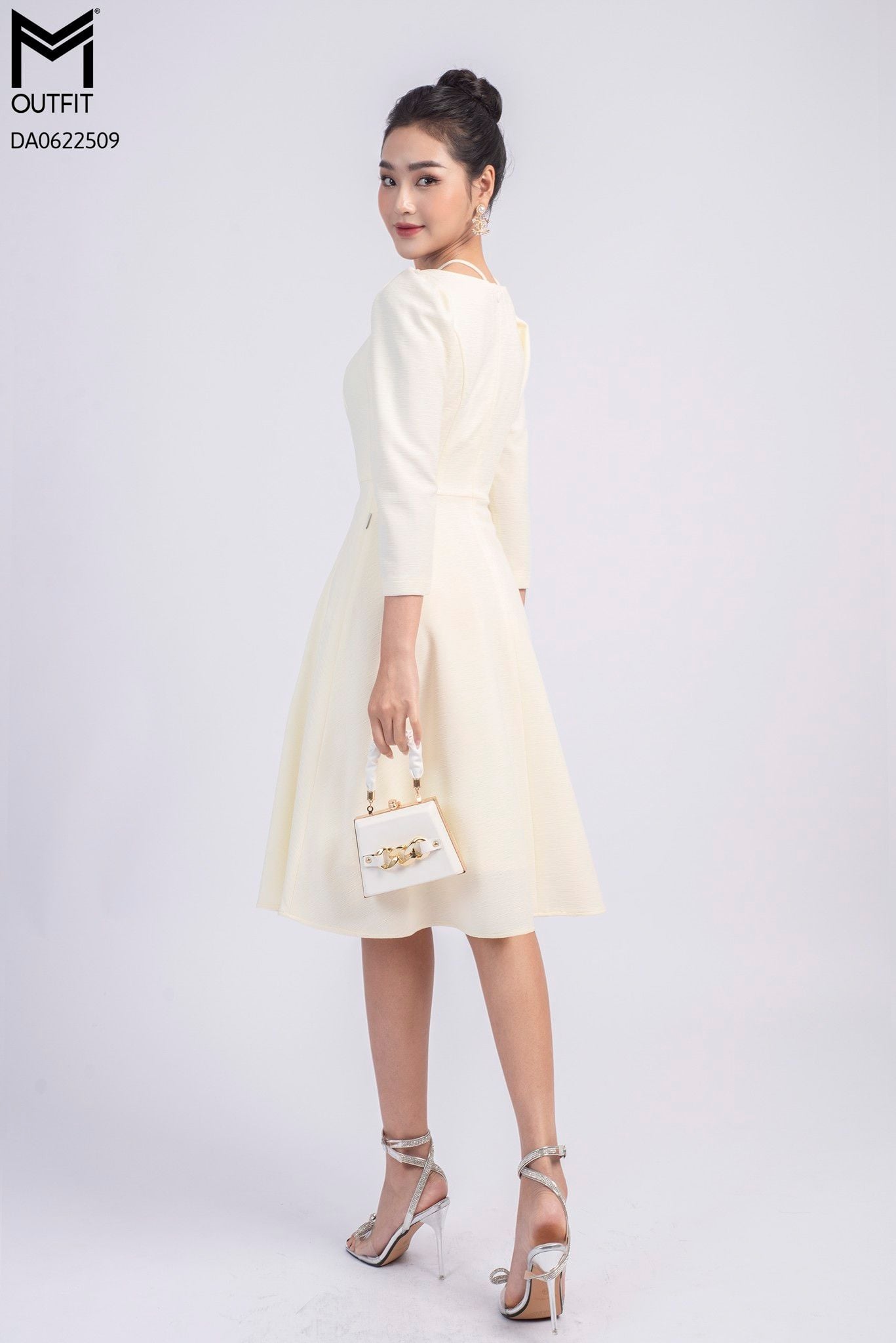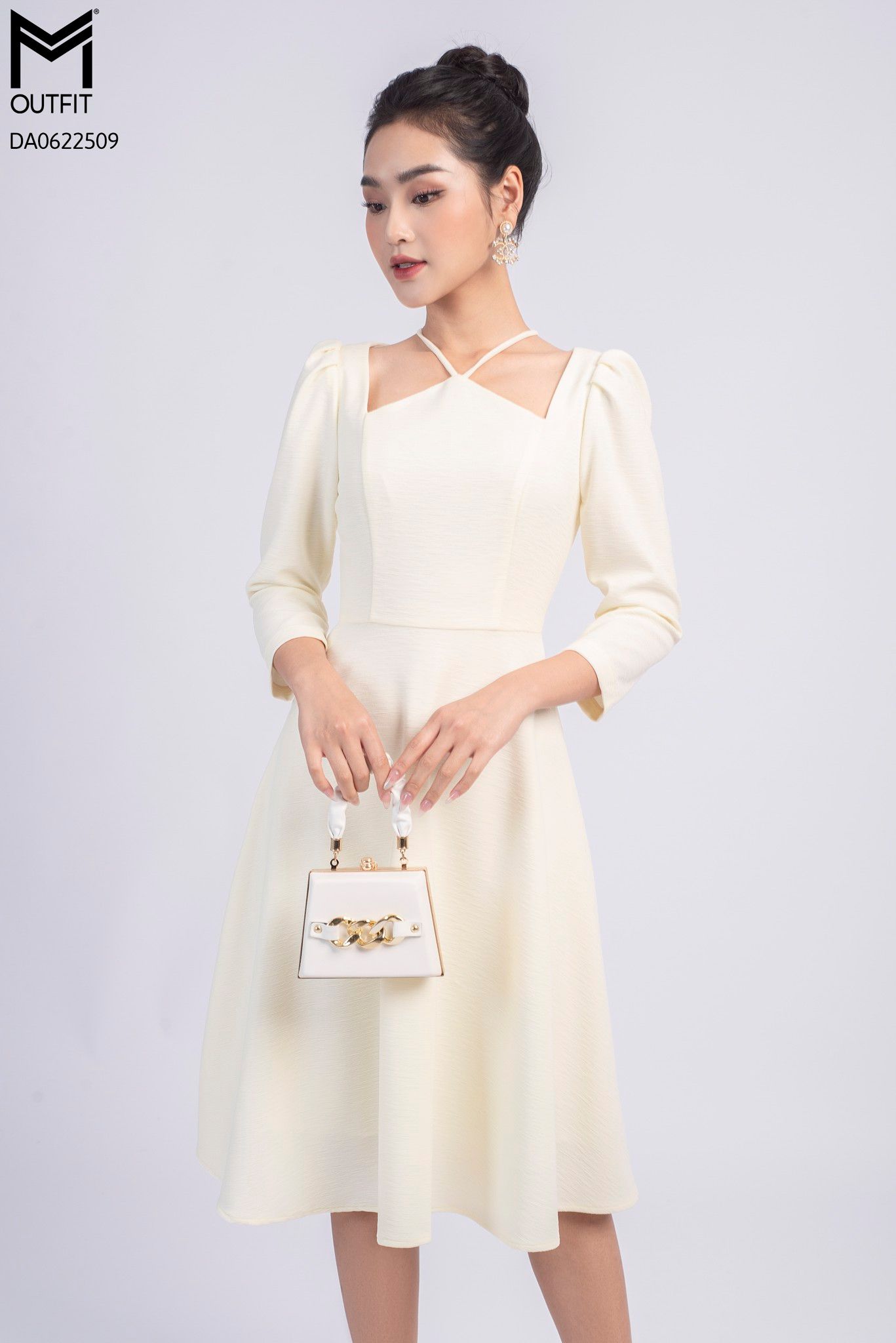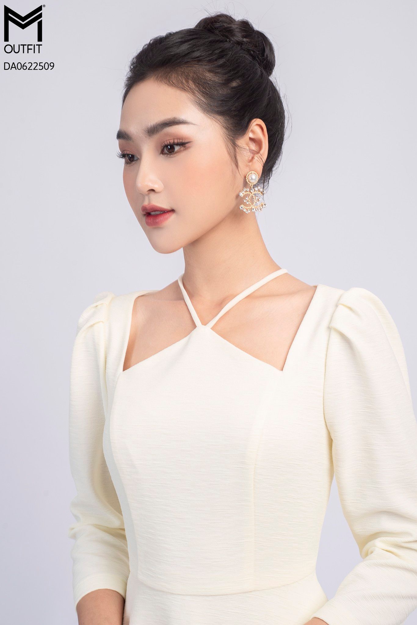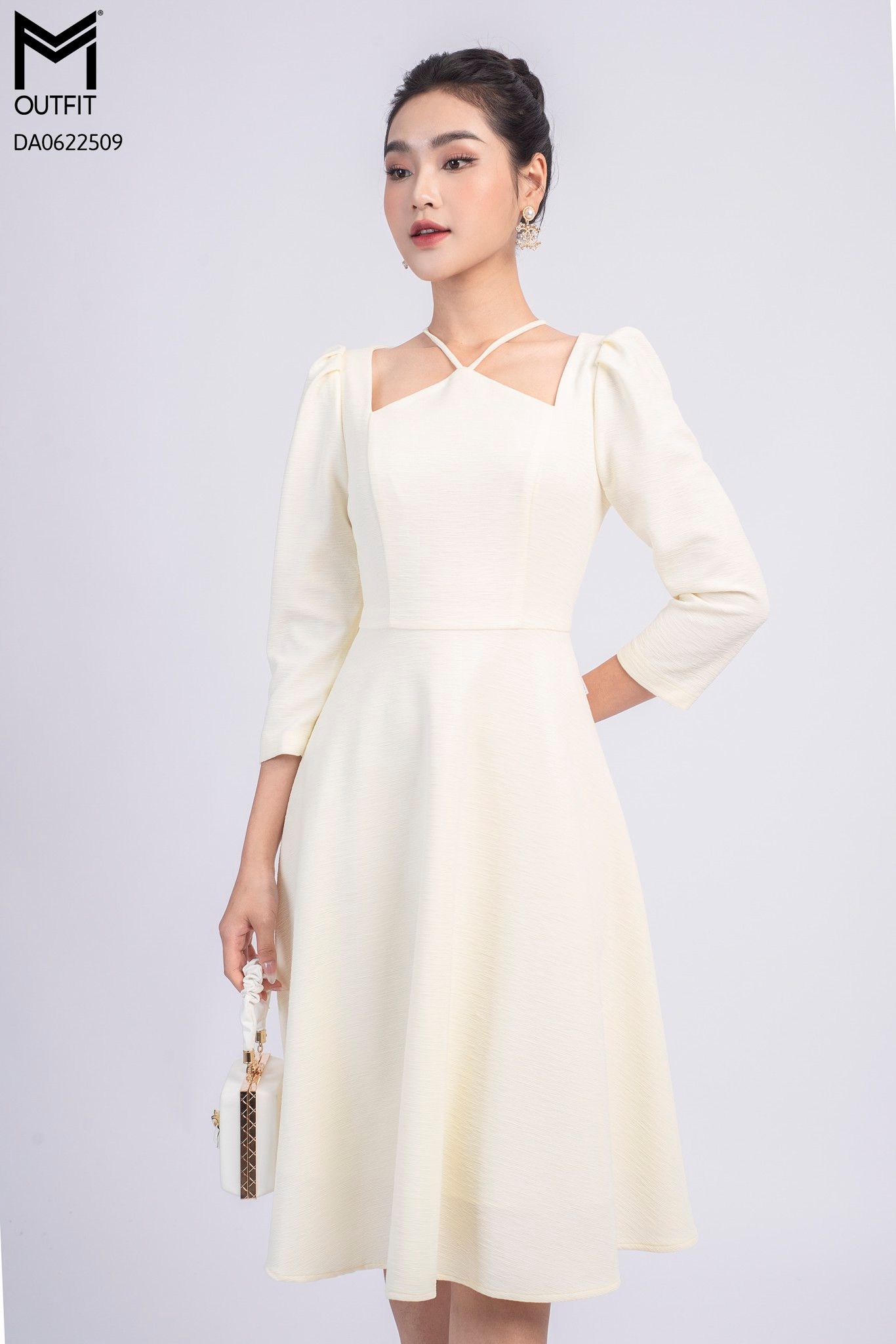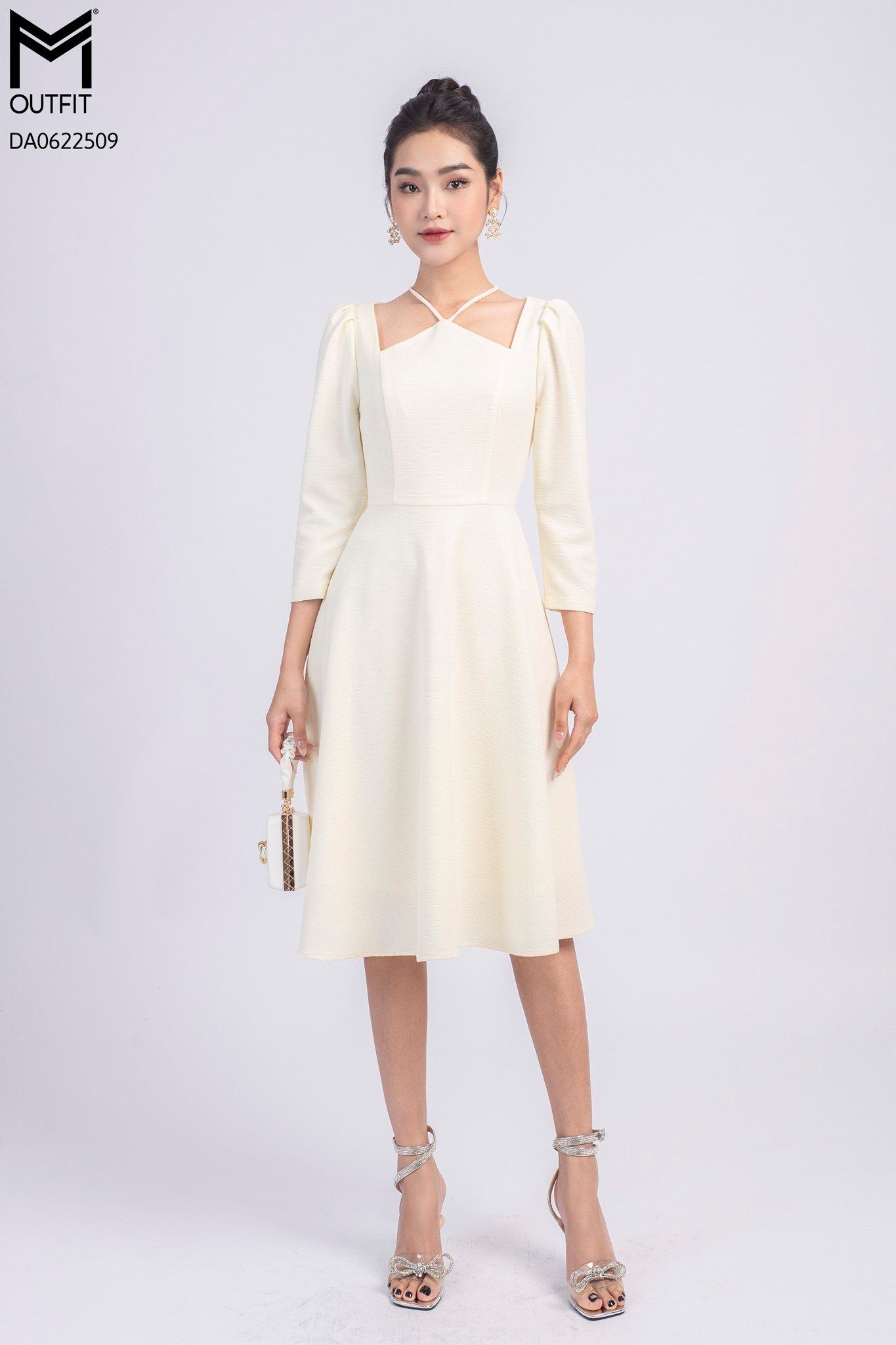 | Đặc điểm | Đầm dáng xòe, hai dây chéo qua cổ |