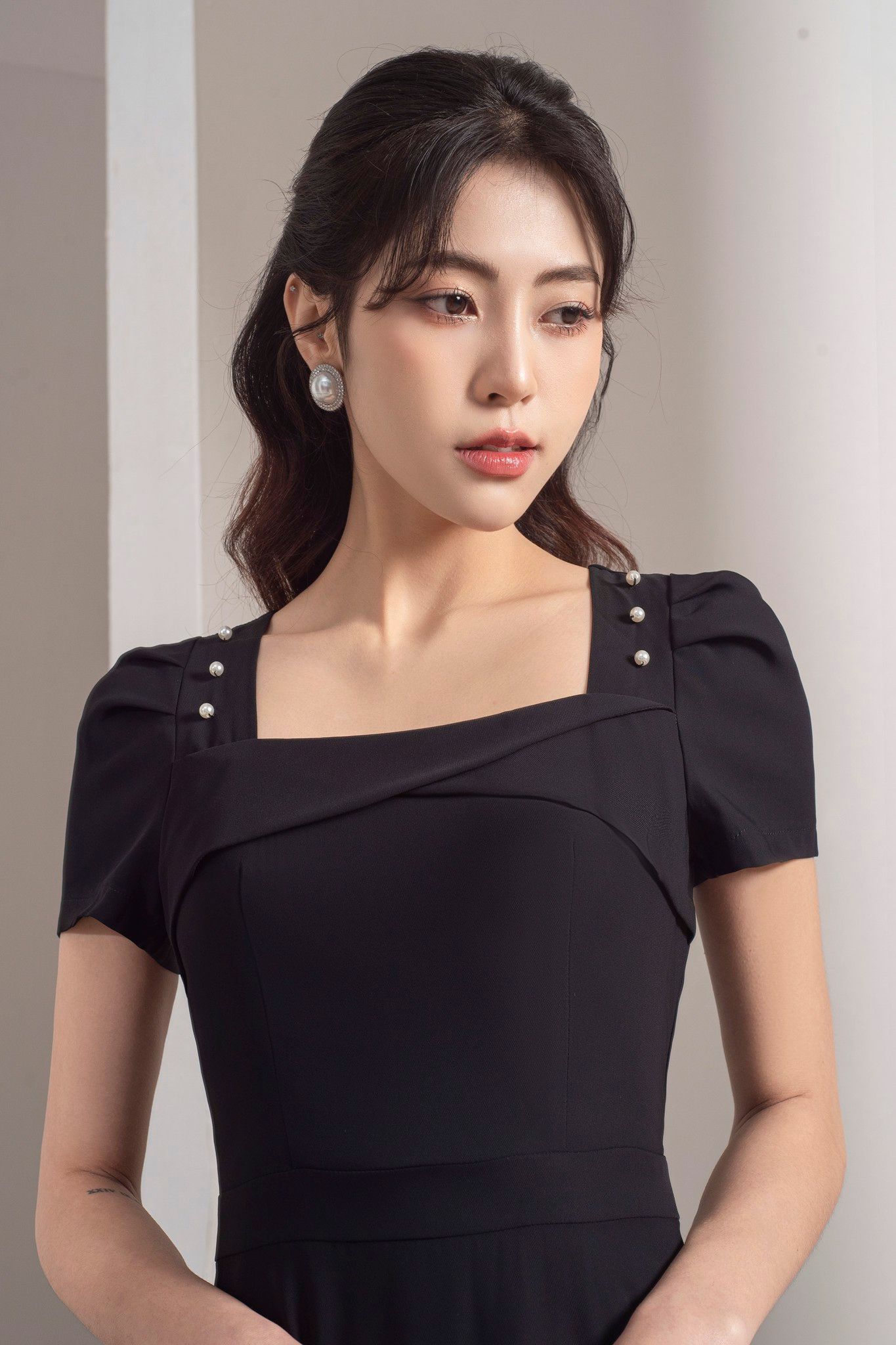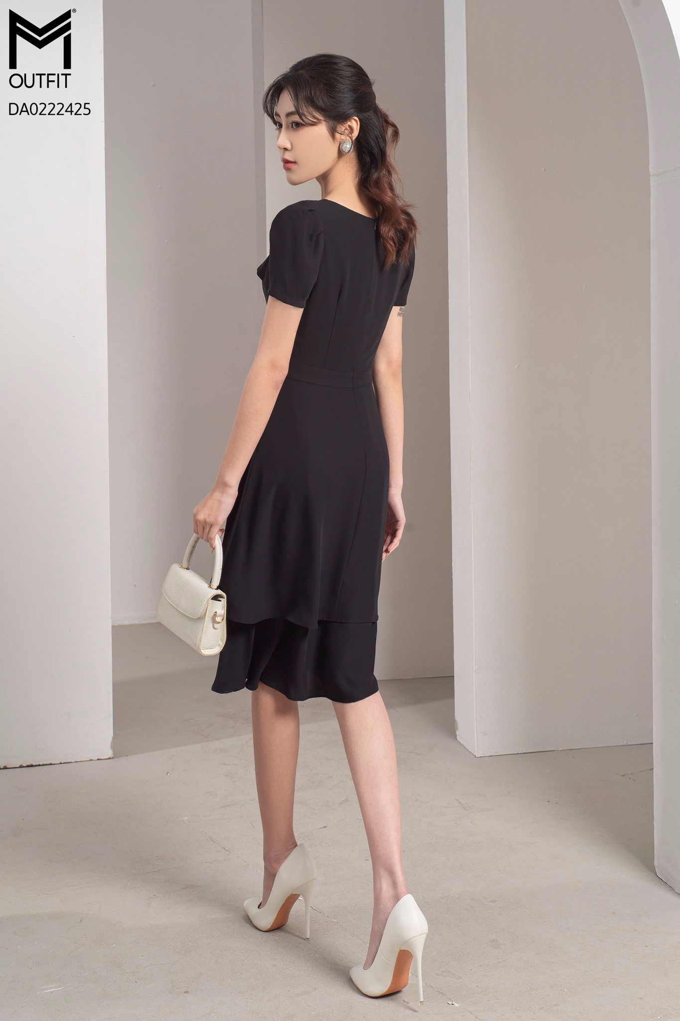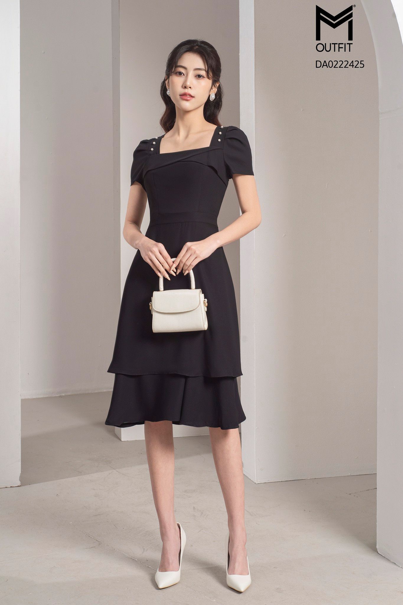 | Đặc điểm | Đầm dáng xòe hai tầng, cổ U, đính hạt trai TT |