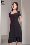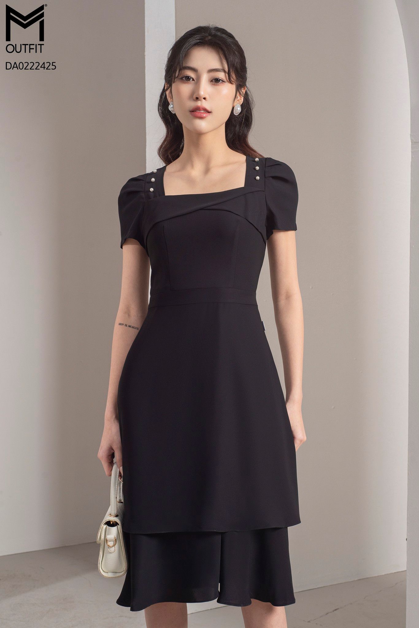 Đầm dáng xòe hai tầng, cổ U, đính hạt trai TT
